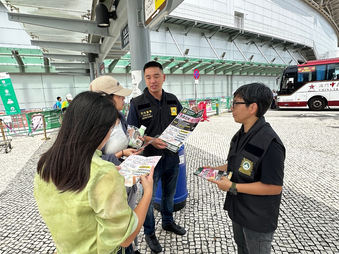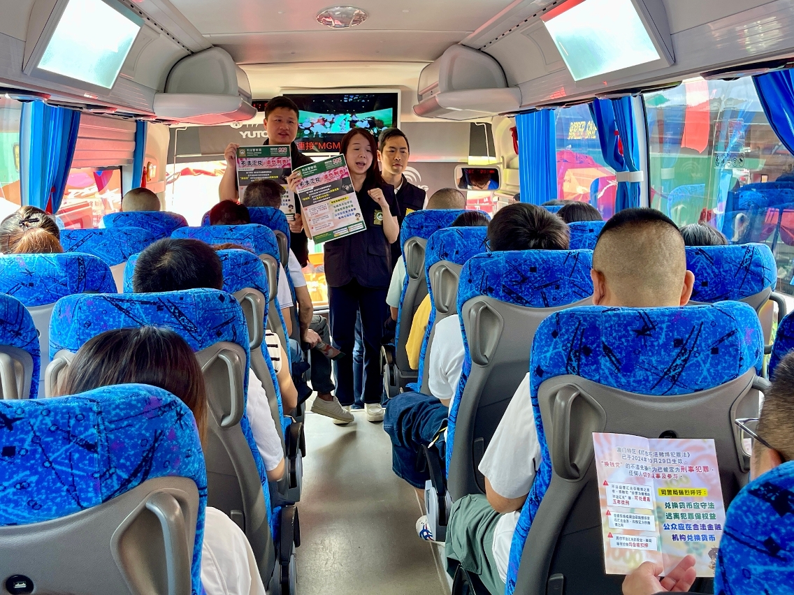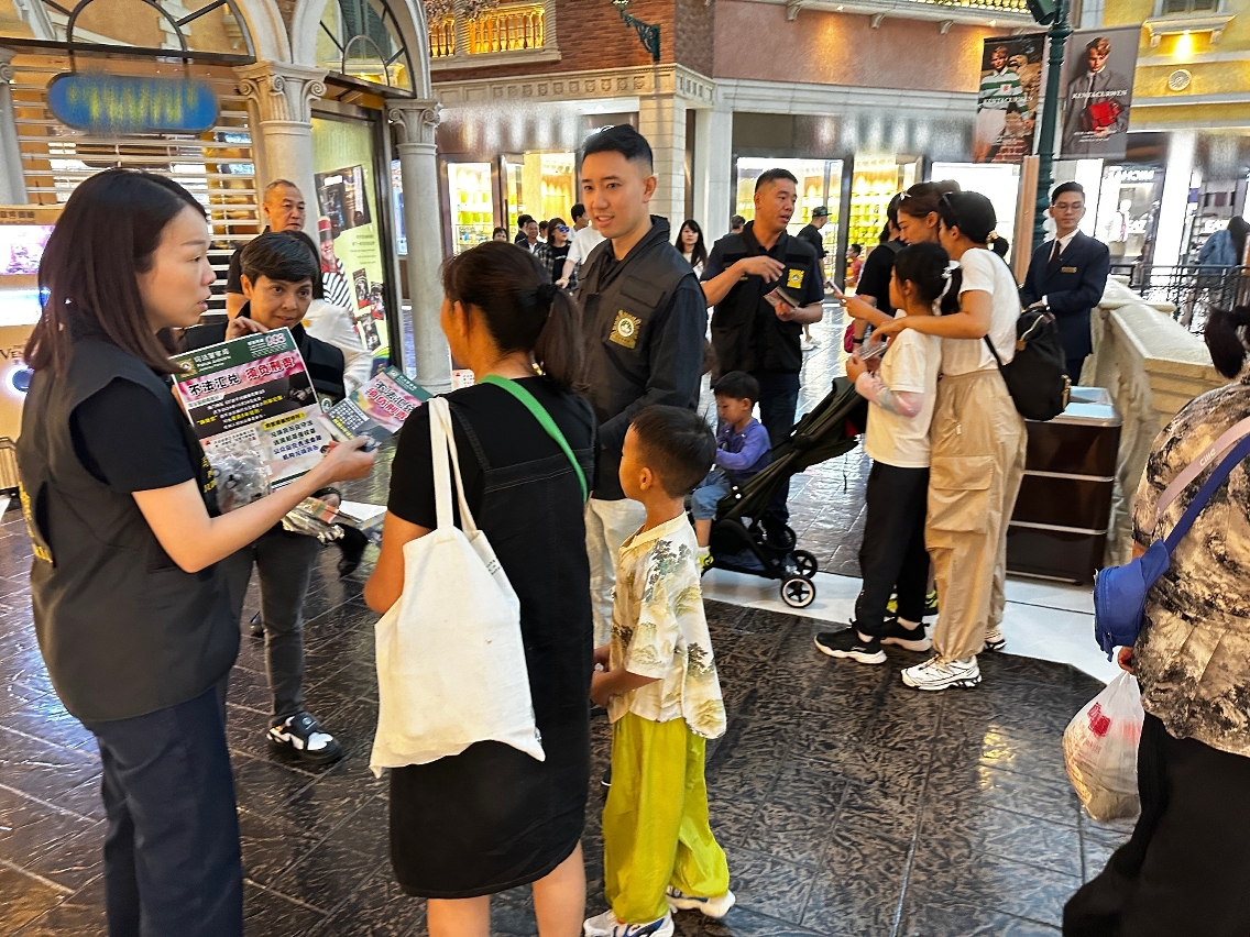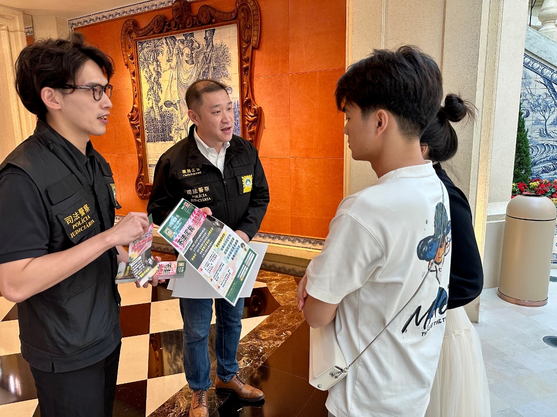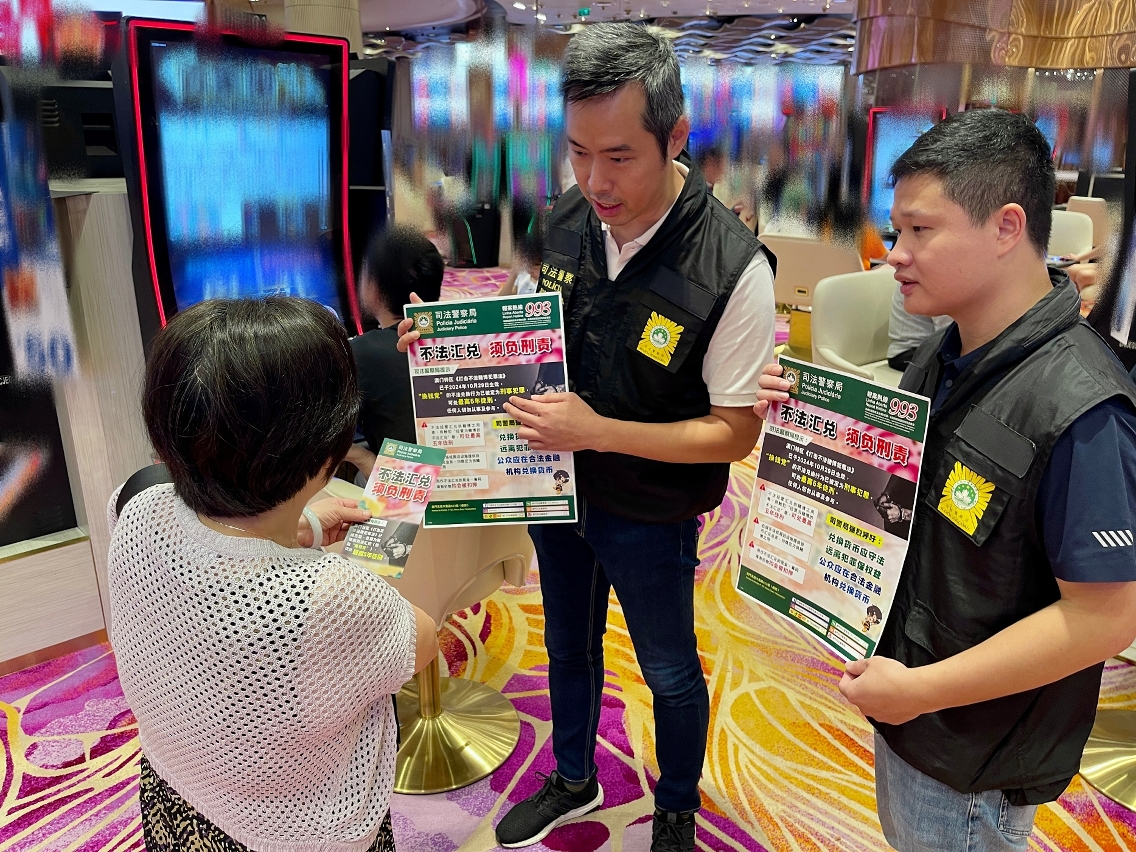 因應國慶長假期臨近,為確保本澳娛樂場治安環境穩定有序,同時讓公眾尤其是旅客深入了解第20/2024號法律《打擊不法賭博犯罪法》中關於經營為賭博的不法匯兌的相關法律規定,避免誤觸法網,司法警察局於2025年9月29日及30日前往本澳各區多間娛樂場及其周邊設施,以及出入境口岸等重點區域,全面展開相關宣傳工作,提醒公眾須嚴格遵守本澳法律法規,切勿參與或從事“換錢黨”所涉及的不法匯兌活動,以免負上刑責。