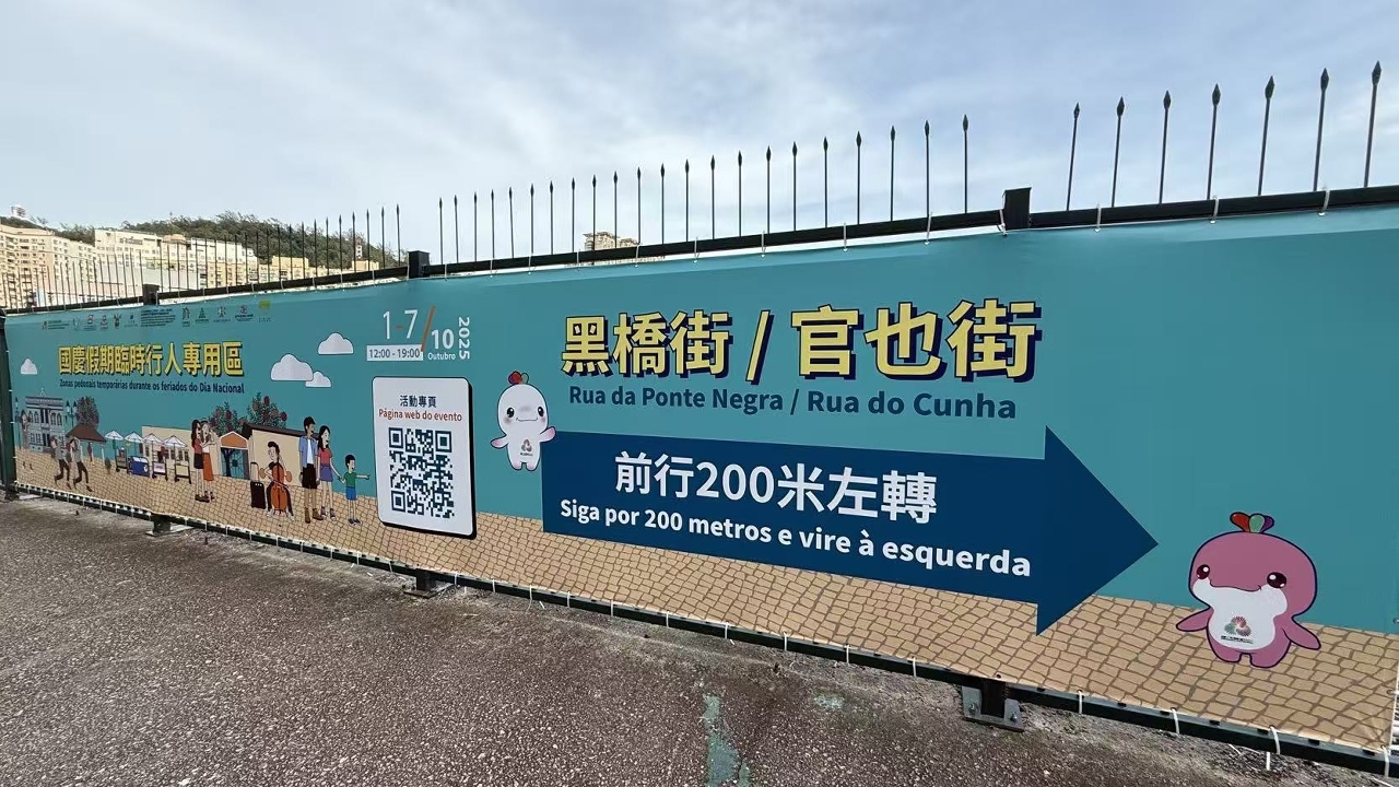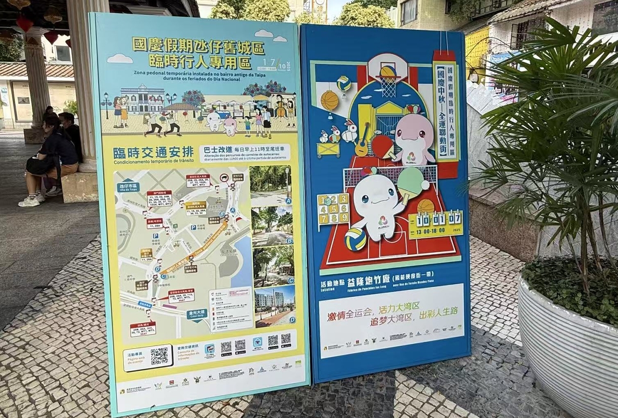 為迎接十一國慶假期,確保氹仔舊城區及大三巴鄰近地區的人流及交通有序通行,經濟及科技發展局(下稱“經科局”)、市政署、旅遊局、治安警察局、消防局、文化局、第十五屆全國運動會及全國第十二屆殘疾人運動會暨第九屆特殊奧林匹克運動會澳門賽區籌備辦公室(下稱“十五運辦公室”)及交通事務局聯同澳門街坊會聯合總會、澳門離島工商業聯合會及澳門中區南區工商聯會合作設置“國慶假期臨時行人專用區”。