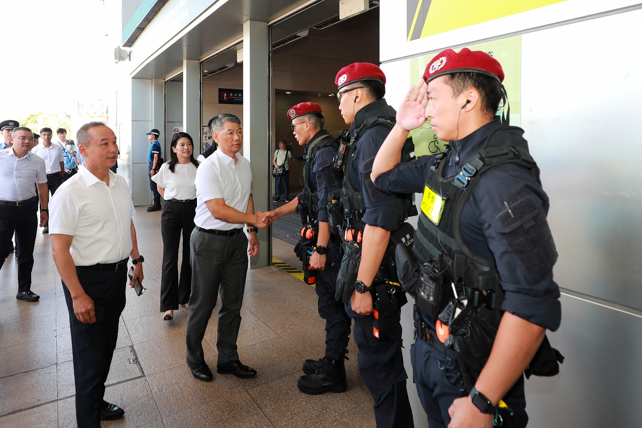 視察期間,梁文昌局長對各口岸及市面的警務部署與執行情況表示肯定,同時還特別慰問了在節日期間執勤的前線警員,感謝他們堅守崗位與辛勤付出,保障了出入境口岸的通關順暢和市面秩序的穩定,並勉勵大家繼續以高度的責任感和使命感,為市民及旅客營造一個安全、便捷、和諧的節日環境。