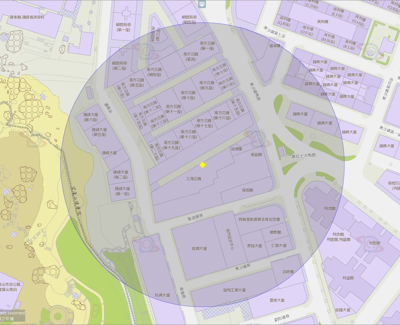 • 蓮峰街江海花園附近風險區域100米半徑範圍