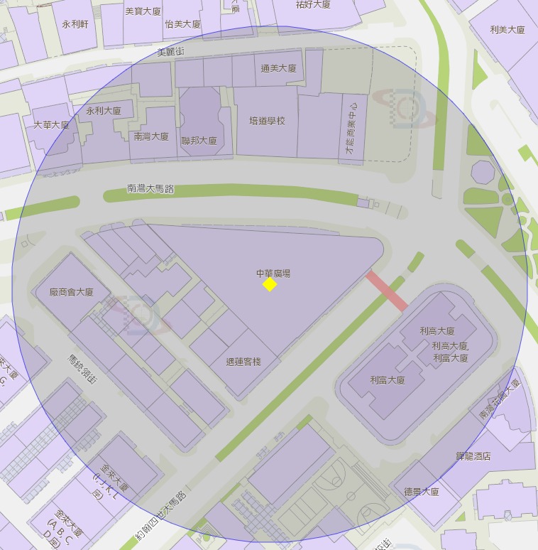 • 中華廣場附近風險區域100米半徑範圍