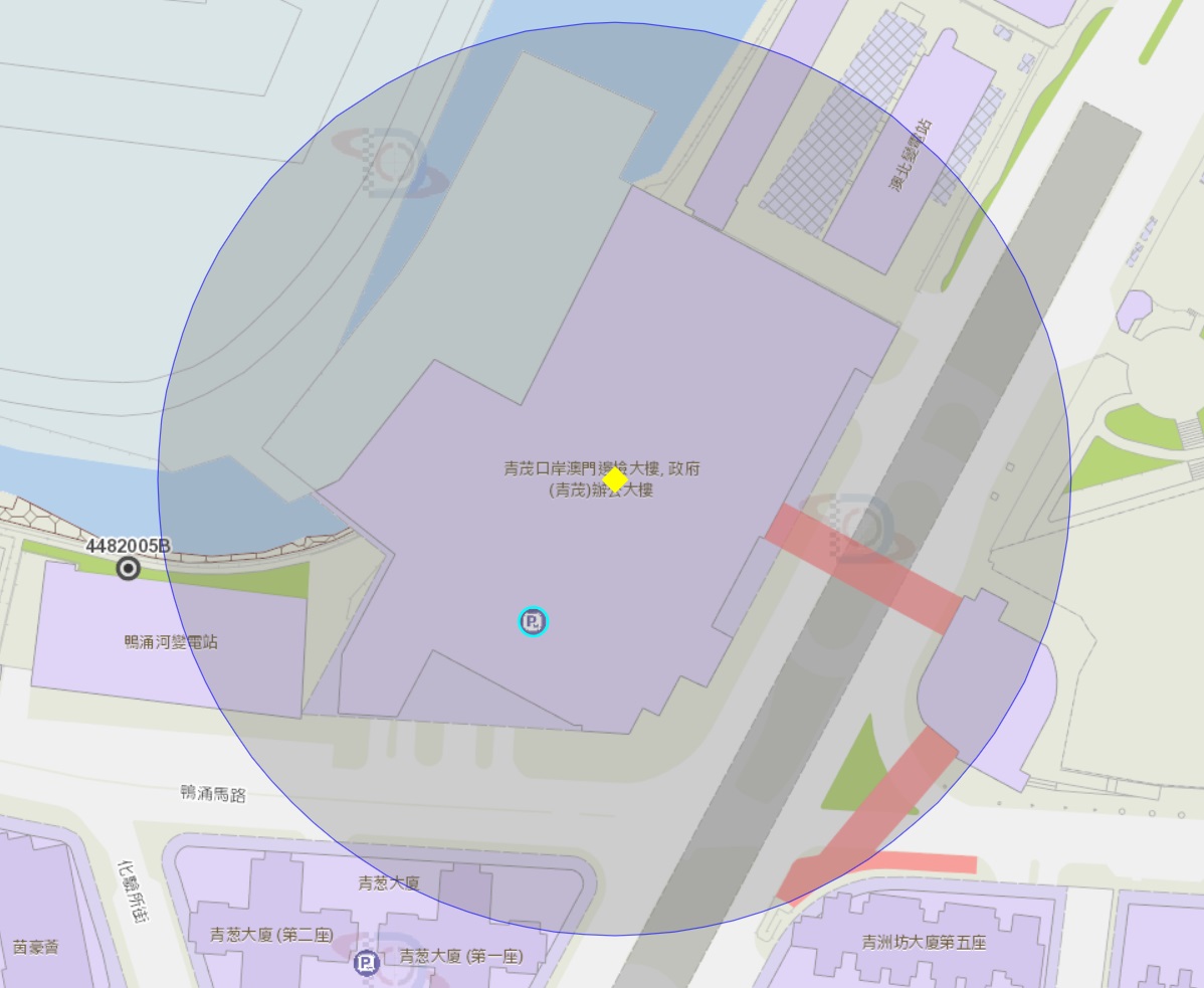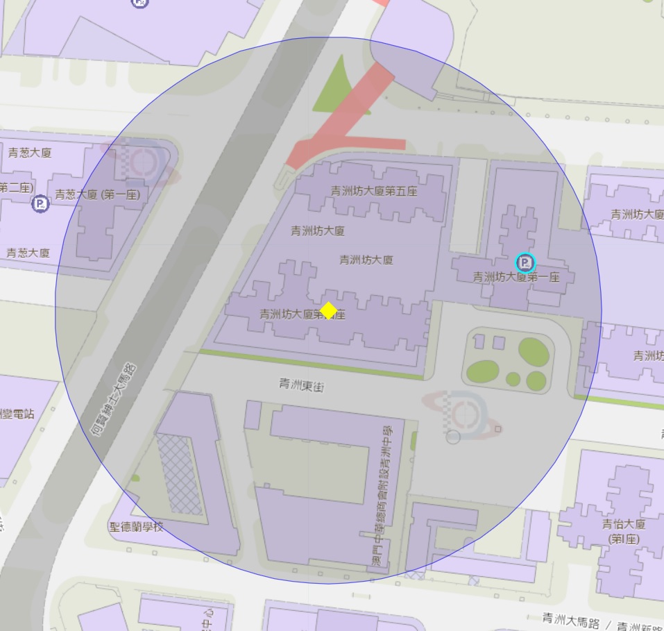 • 青洲坊大廈第四座附近風險區域100米半徑範圍
