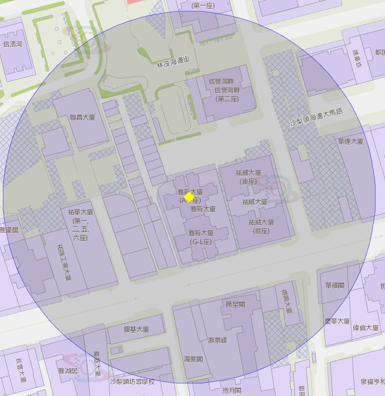 • 雅新大廈第一座附近風險區域100米半徑範圍