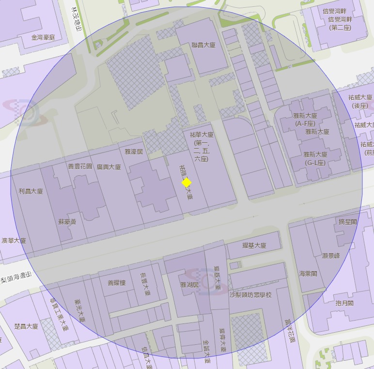 • 祐強工業大廈附近風險區域100米半徑範圍
