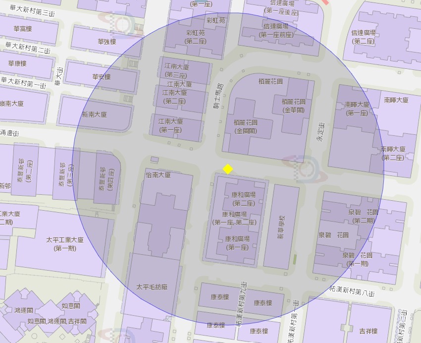 看台街巴士站一帶附近風險區域100米半徑範圍