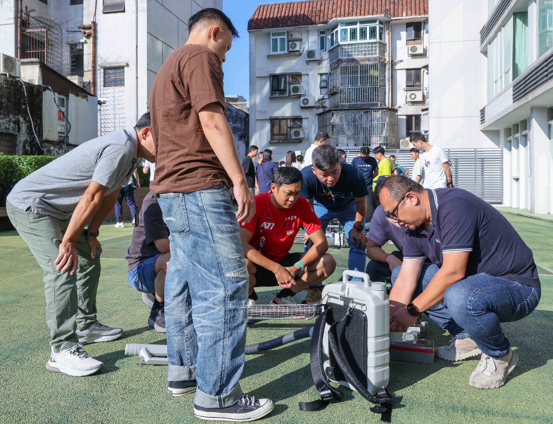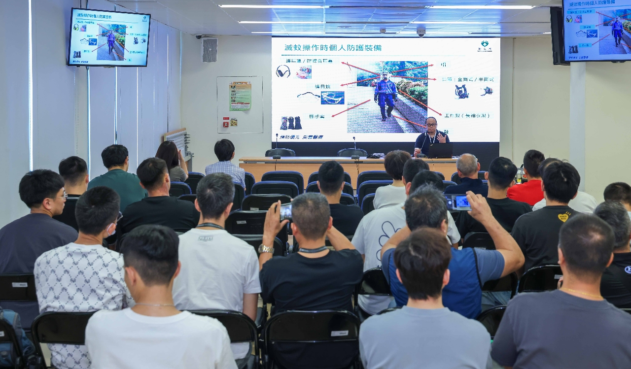 培訓課程分為室內講解與室外實務操作兩部分,內容包括:1、講解操作人員應佩戴的安全防護裝備,確保在使用藥物及機器過程中保障個人安全;2、介紹滅蚊機器及藥物的種類與特性,以了解不同設備的功能與適用場景,以及噴灑的最佳時機; 3、系統說明滅蚊操作流程及注意事項,以掌握標準作業方法;4、由專業人員現場示範超低容量噴霧機及熱霧機的操作,又安排分組實操,以便熟悉設備操作及噴灑技巧,提升整體的實務操作能力。