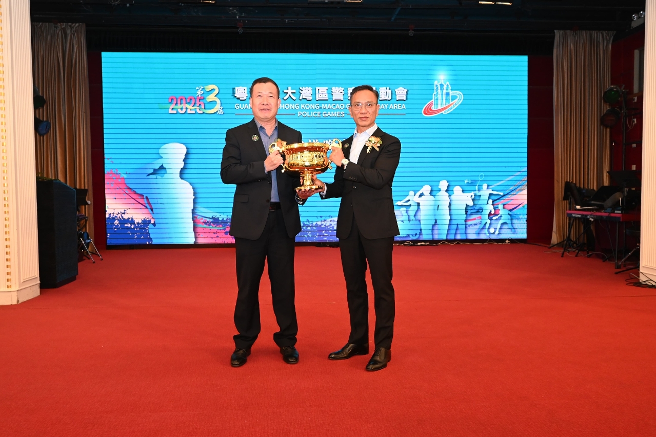 澳門保安司司長陳子勁主持本屆運動會閉幕儀式,並以「灣區同心、護航發展」為核心,體現澳門對盛會的重視,同時為三地警隊的協作注入堅實信心,推動灣區警務領域的協同發展。