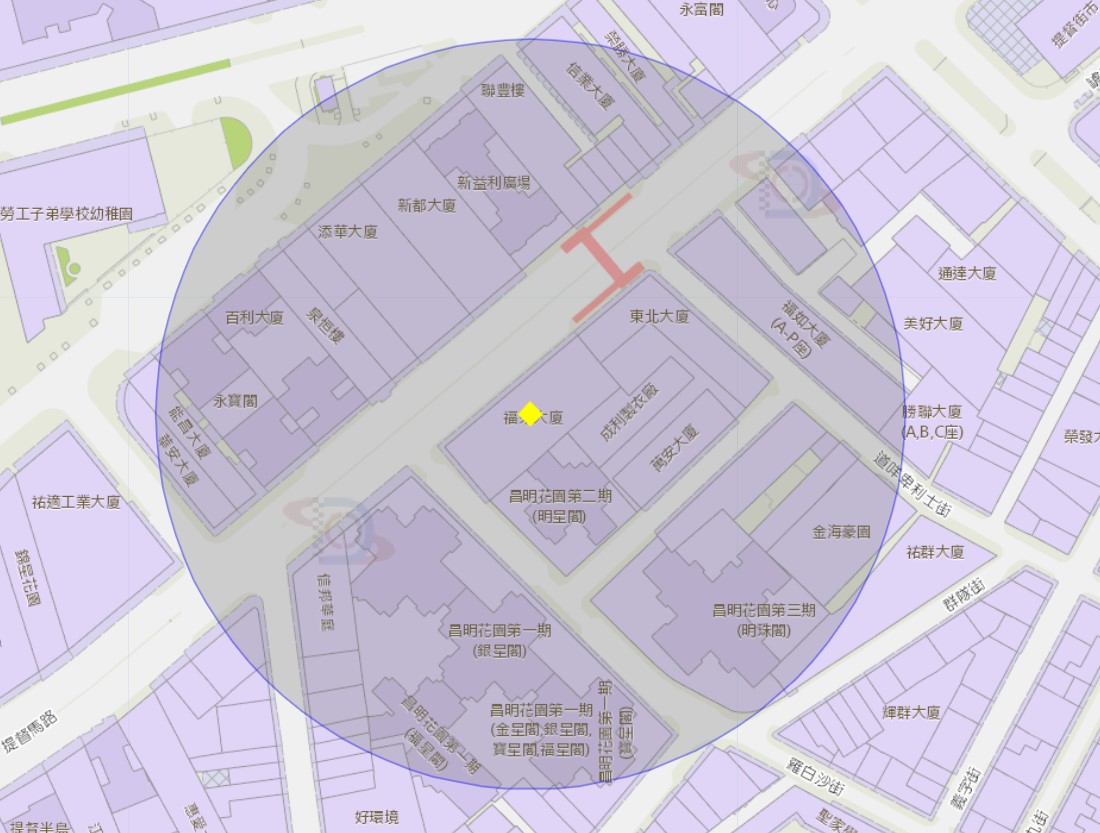 羅白沙街福來大廈附近風險區域100米半徑範圍