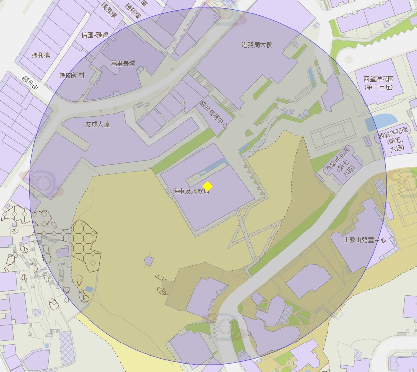 • 海事及水務局附近風險區域100米半徑範圍