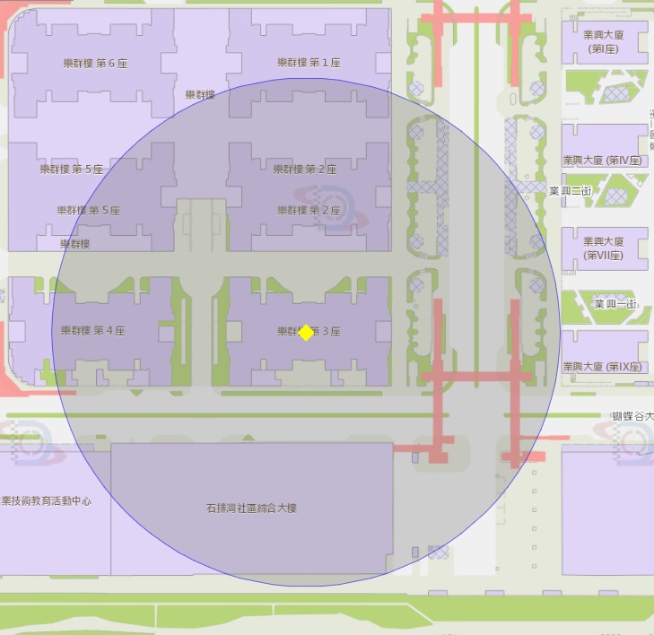 • 路環石排灣樂群樓第三座附近風險區域100米半徑範圍