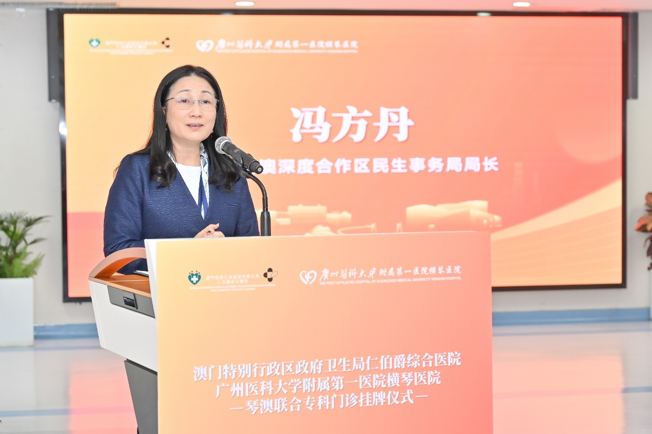 馮方丹局長表示,聯合專科門診的設立,是踐行“便利澳門居民生活就業”實實在在的舉措,標誌着琴澳兩地醫療融合發展邁入了機制化、實體化的新階段,是琴澳兩地醫療規則銜接、資源互補、服務共享的創新實踐。合作區將持續優化提高醫療衛生服務水平,全力推進廣醫一院橫琴醫院建設,背靠國家區域醫療中心輸出醫院優質醫療資源和人才技術優勢,為澳門居民提供更加優質高效、便捷實惠的醫療服務。