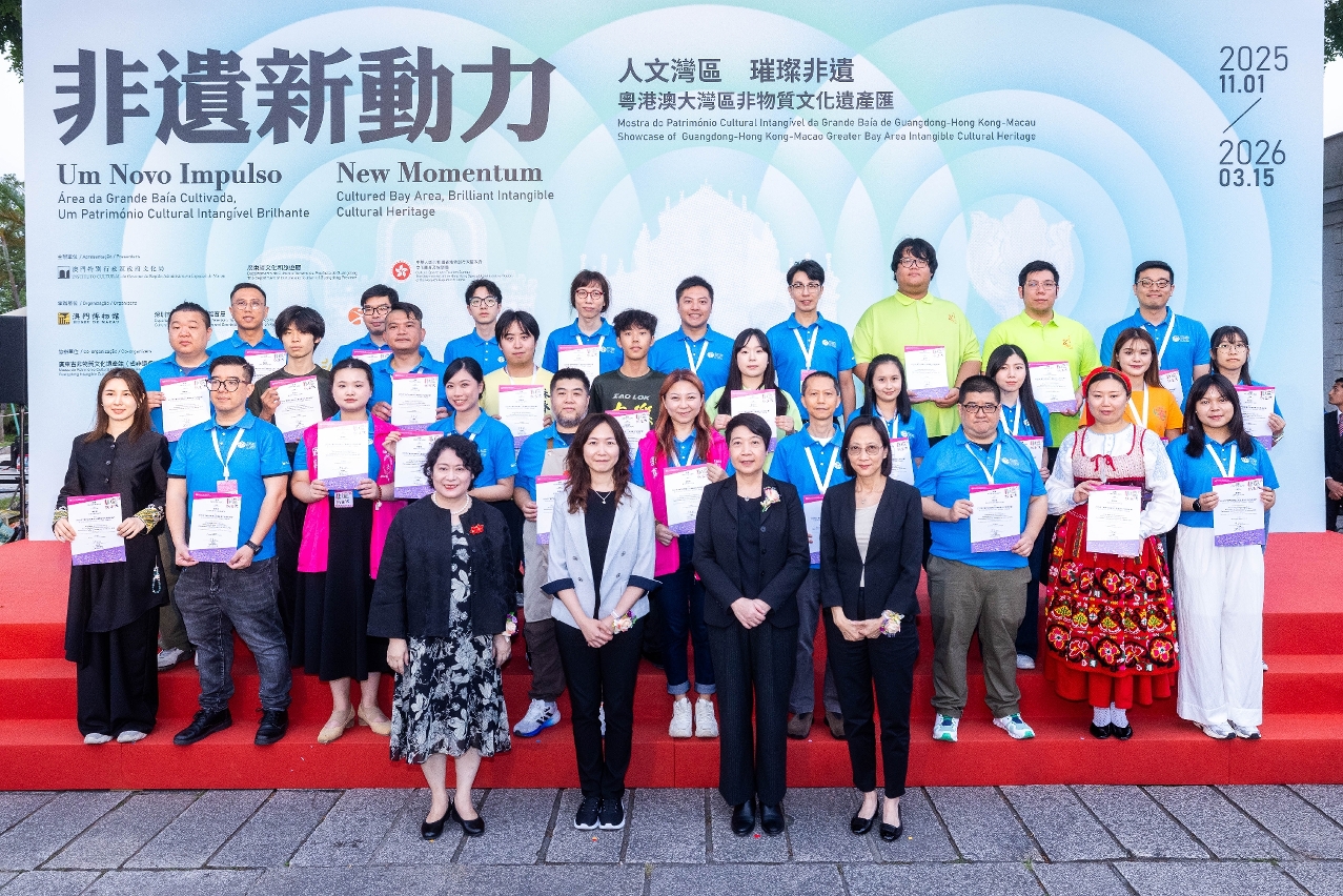為深化粵港澳大灣區非物質文化遺產的交流和合作,由廣東省文化和旅遊廳、香港特別行政區政府文化體育及旅遊局、澳門特別行政區政府文化局主辦,深圳市文化廣電旅遊體育局、香港康樂及文化事務署、澳門博物館承辦,廣東省非物質文化遺產館(省非遺保護中心)及香港非物質文化遺產辦事處協辦的“非遺新動力——人文灣區•璀璨非遺:粵港澳大灣區非物質文化遺產匯”於11月1日在澳門大炮台花園開幕。