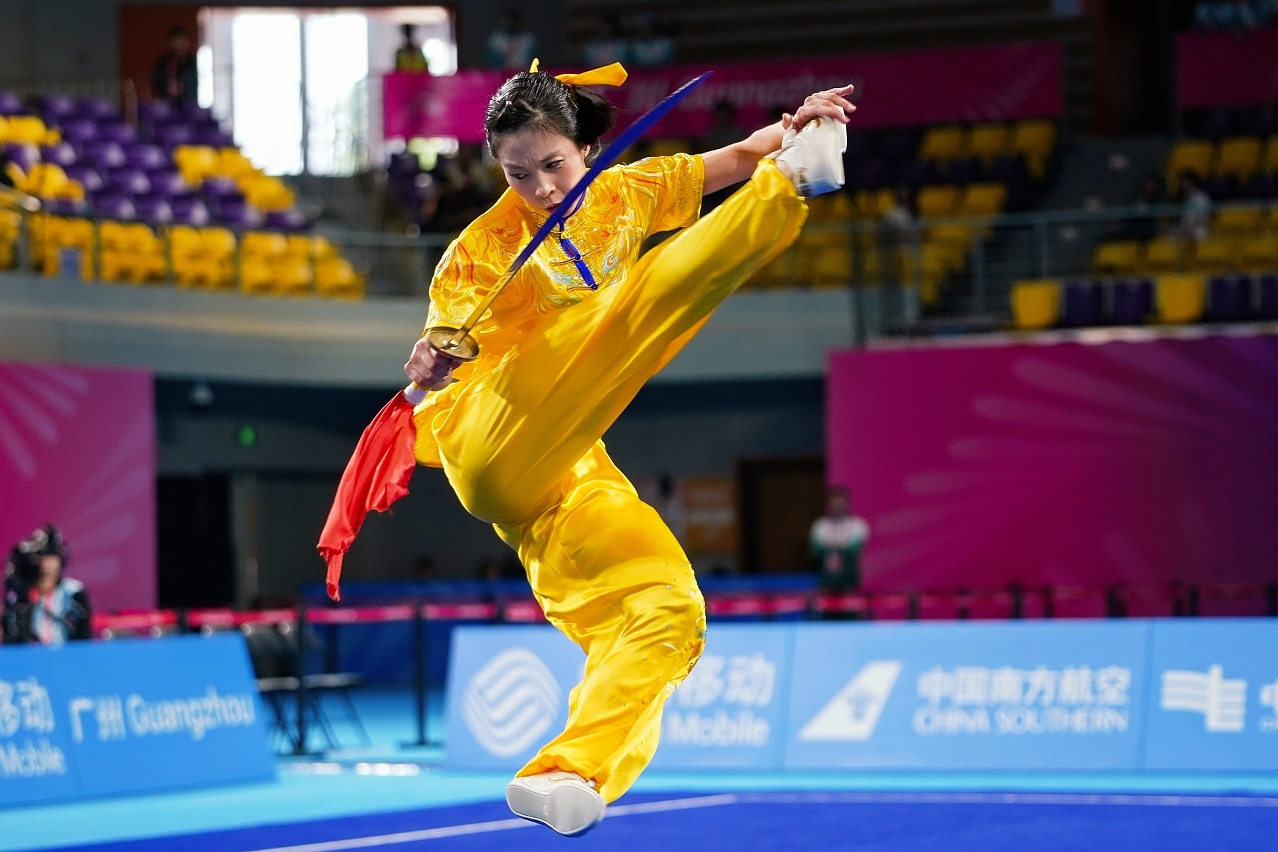 武術套路上演團體賽,經過男子劍術、女子刀術、男子槍術、女子棍術,男子三人徒手對練及女子二人對練共6個項目比拼後,澳門隊獲得總分56.852分,最終排名第13位,並已完成本屆所有賽事。
