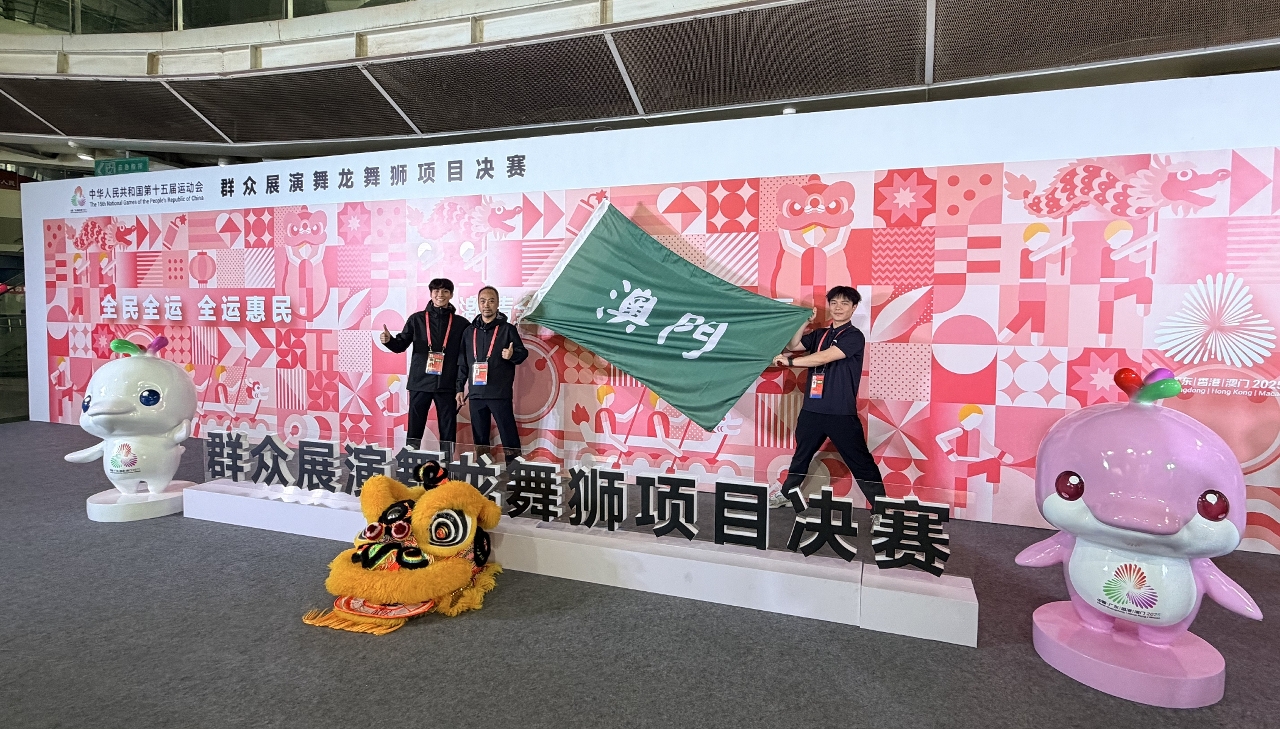 第十五屆全國運動會群眾展演舞龍舞獅項目決賽於11月11日至13日在佛山嶺南明珠體育館舉行,澳門理工大學護理學學士課程學生黃澤榮,以及體育教育學士課程學生余樂琪代表澳門出戰賽事,憑著與隊員極佳的默契配合和出色的表現,分別於南獅障礙及舞龍障礙項目勇奪二等獎和三等獎,為澳門增光添彩。