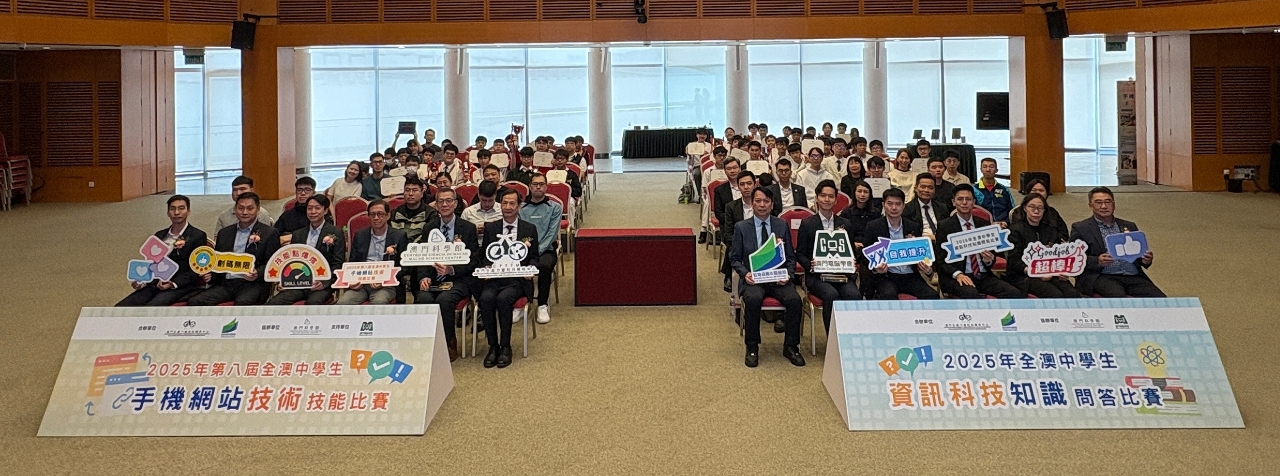 為提高澳門中學生的科技創新能力,澳門生產力暨科技轉移中心(下稱“生產力中心”)於11月15日假澳門科學館會議廳,舉行“2025年全澳中學生資訊科技知識問答比賽”及“2025年第八屆全澳中學生手機網站技術技能比賽”聯合頒獎禮,兩項比賽吸引超過400名學生參與,共50名參賽者獲得獎項。