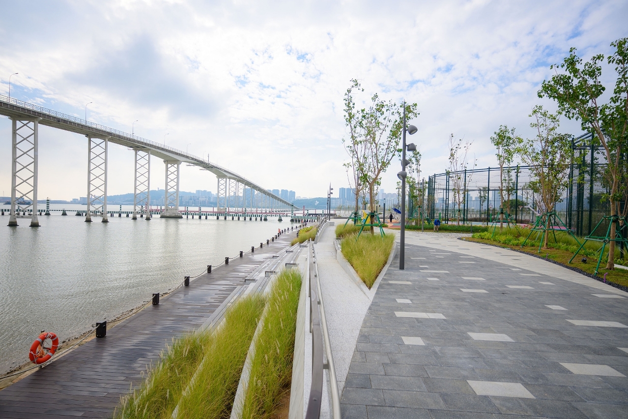 南岸海濱綠廊二期工程分三區,範圍由嘉樂庇總督大橋至融和門之間,建造總面積約六萬平方米。二區工程正按計劃推進,目前已完成近百分之七十土建工程,三區則正開展前期協調工作。整個項目設計以親子遊樂、休閒康體、親水景觀為功能空間的三大主軸,打造為澳門半島南岸的綠色走廊,為市民提供一個多功能的海濱康樂休閒場所,同時完善城市沿岸景觀。