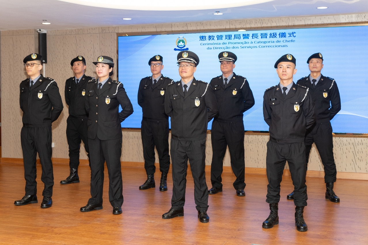 程况明局長在儀式上表示,八位獲晉級的警長憑著多年的努力及豐富的監務工作經驗,在晉級開考甄選中脫穎而出,以及通過晉級培訓課程及實習,具備了擔任警長職務所需的專業資格和能力。並表示當各位新晉警長戴上警長的肩章那一刻,意味著肩負的責任更重,勉勵他們要始終堅守初心信念,盡忠職守,廉潔奉公,與獄警隊伍人員同心協力,為懲教事業不懈努力。同時表示隨著社會的不斷發展,懲教工作面臨各種新的挑戰,懲教管理局將持續加強隊伍建設,提升懲教人員的專業素質及管理效能,達至更有效地履行懲教職責,為維護澳門社會的和諧穩定作出更大貢獻。