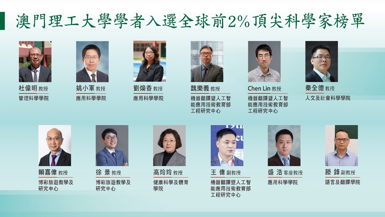 由美國史丹福大學及Elsevier旗下Mendeley Data共同發佈的“全球前2%頂尖科學家榜”(World’s Top 2% Scientists)公佈最新評選結果。該榜單分為“終身科學影響力排行榜”與“年度科學影響力排行榜”,旨在系統性地評估學者在長期與近期研究表現上的學術影響力。澳門理工大學在此次評選中表現卓越,共有12位學者榮登“年度科學影響力排行榜”,其中 6位學者更同時進入“終身科學影響力排行榜”,展現澳理大在國際上的卓越學術影響力。