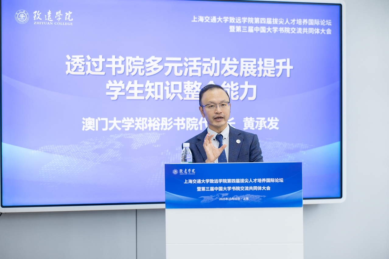 澳大鄭裕彤書院代院長黃承發在“大學現代書院制創新實踐”分論壇中,發表了題為“透過書院多元活動發展提升學生知識整合能力”的專題演講,內容緊扣書院教育實踐,以及澳大書院在推動學生全人發展方面的創新舉措,獲得了與會者的高度評價與熱烈反響。