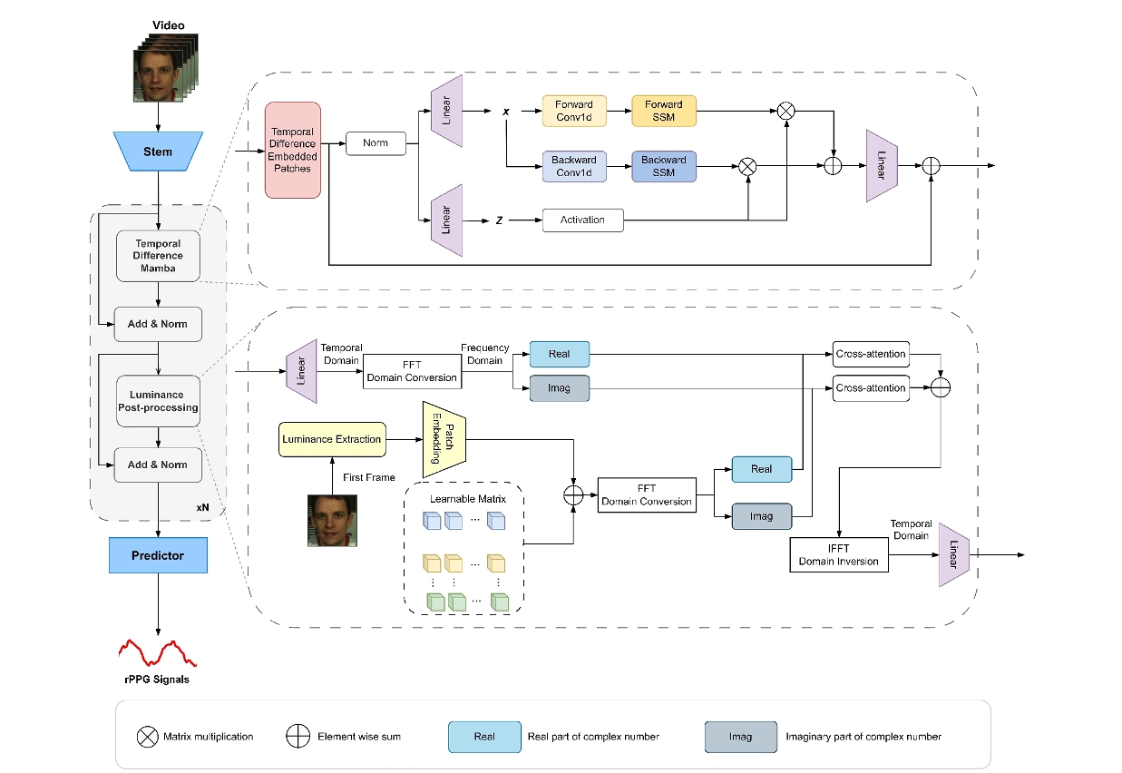 研究成果分別以“HRMamba: Fusing Luminance Information for Remote Physiological Measurement in Varied Lighting Conditions”(HRMamba:融合亮度信息的多光照環境下遠程生理信號測量方法)及“BRPDNet: A BioRegion Prompt Distillation Network for Physiological Monitoring”(BRPDNet:用於生理監測的生物區域提示蒸餾網絡)為題,發表於國際權威期刊《IEEE Journal of Biomedical and Health Informatics》;及以“Self-Adaptive Illumination Enhancement for Neonatal Remote Physiological Measurement in NICUs”(新生兒重症監護病房中基於自適應光照增強的遠程生理信號測量方法)為題,發表於國際權威期刊《IEEE Transactions on Consumer Electronics》。