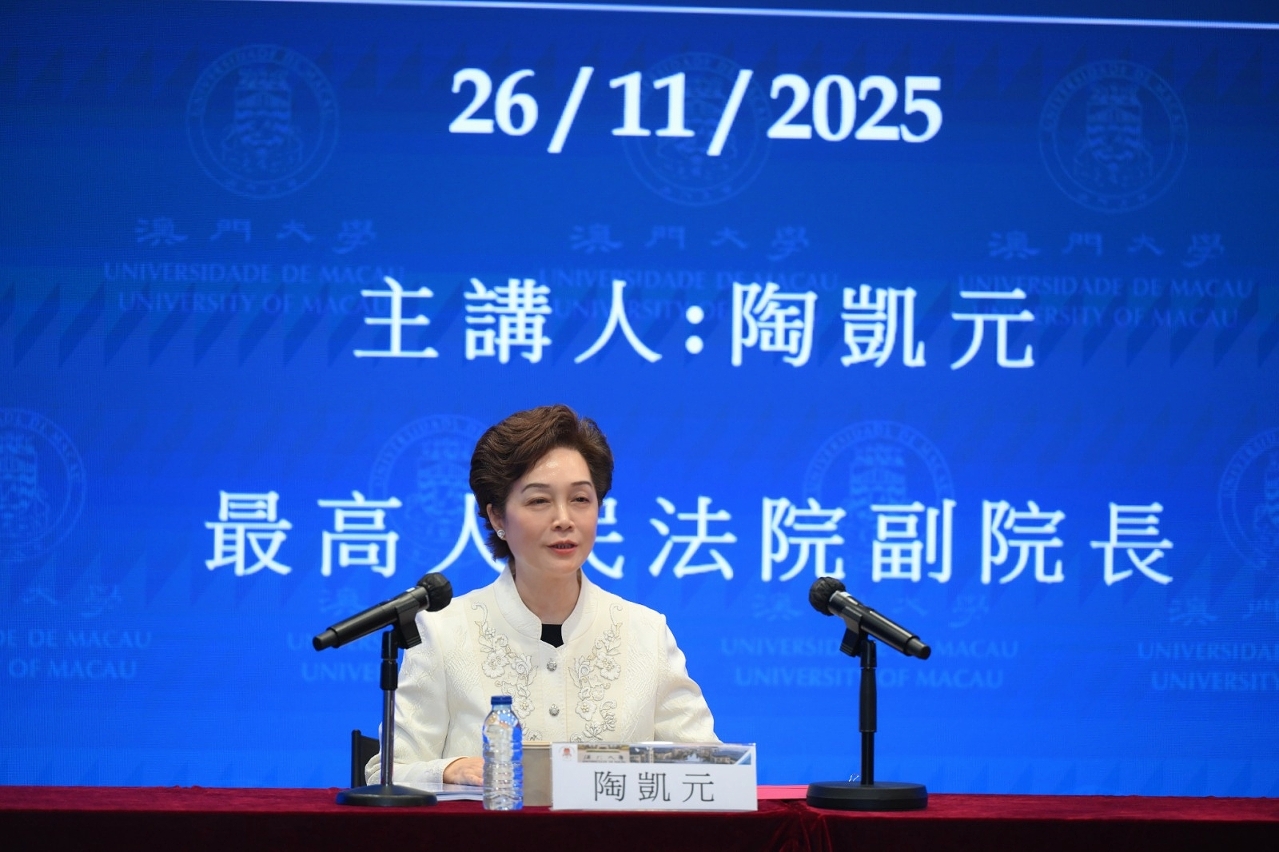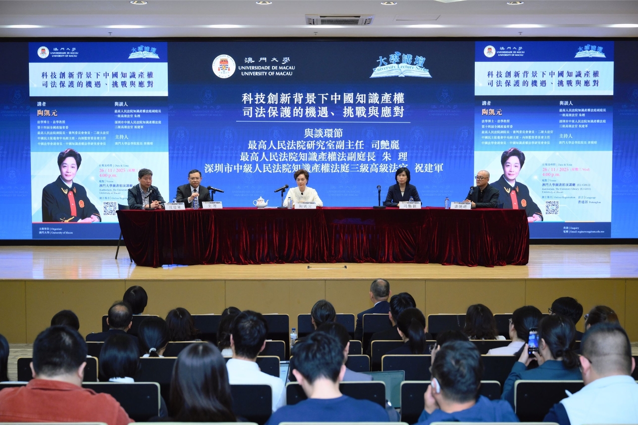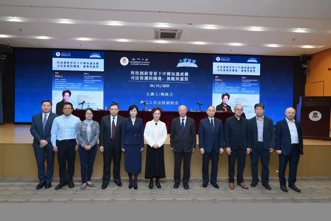 澳門大學舉行“大學講壇”,由最高人民法院副院長、二級大法官陶凱元以“科技創新背景下中國知識產權司法保護的機遇、挑戰與應對”為題發表演說,深入探討中國知識產權司法保護的新形勢、新任務及司法應對,吸引澳門社會各界參與。
