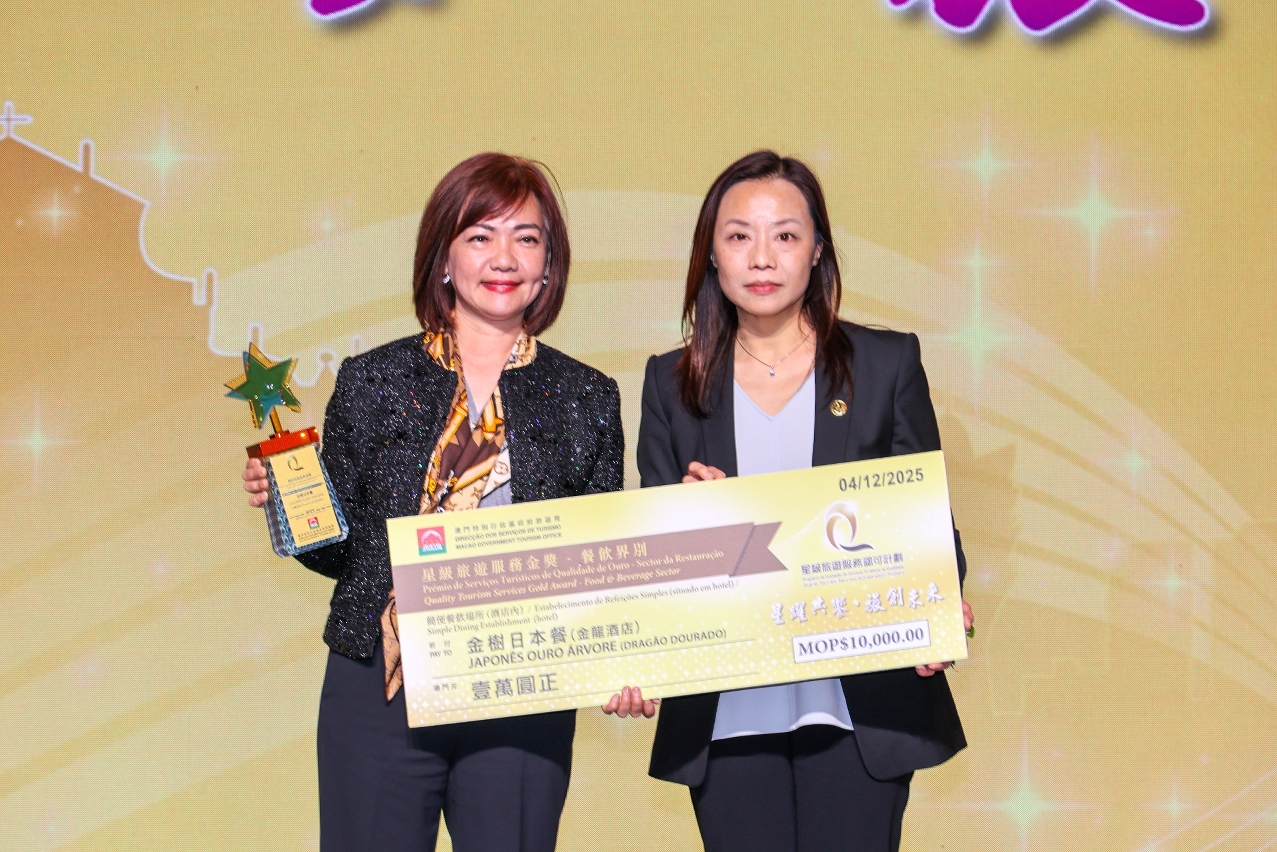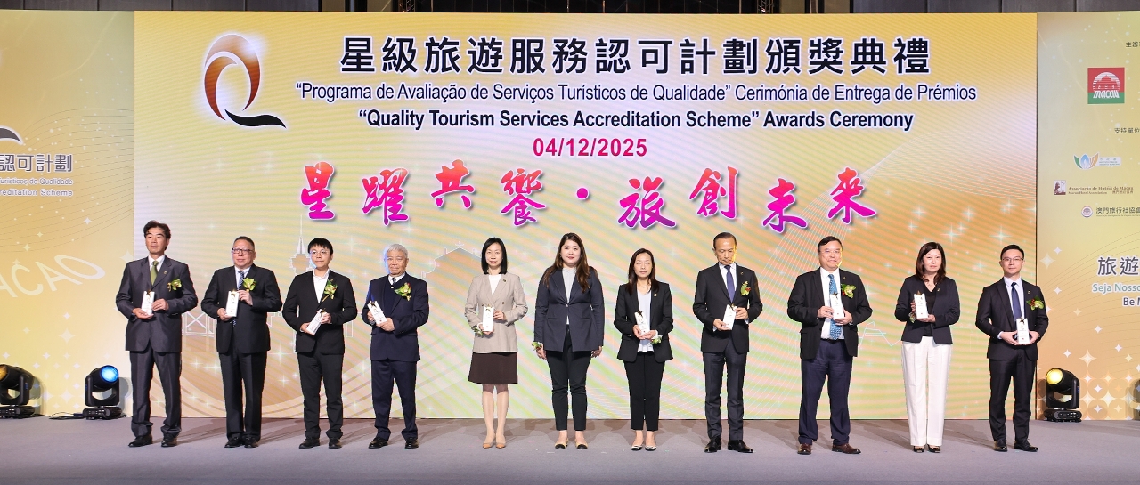旅遊局於今(4)日舉辦2025年度“星級旅遊服務認可計劃”餐飲及旅行社界別的頒獎典禮,嘉許本年度新參加及再次競逐的獲獎餐飲及旅行社商戶。今年獲得“星級旅遊服務商戶獎”的餐飲界別共有327間,旅行社界別有57間,鼓勵澳門旅遊業界提供優質旅遊服務,共同打造澳門成為有禮優秀的旅遊目的地。