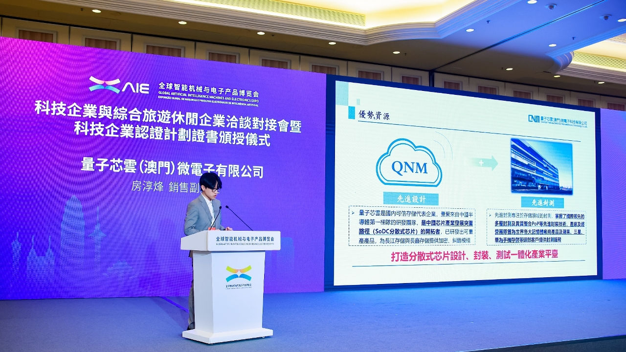由經濟及科技發展局(下稱“經科局”)和科學技術發展基金(下稱“科技基金”)主辦的“科技企業與綜合旅遊休閒企業洽談對接會暨科技企業認證計劃證書頒授儀式”(下稱“對接會”)今(5)日假澳門威尼斯人舉行,是今年“全球智能機械與電子產品博覽會”(下稱“AIE”)的系列活動之一。經科局代局長鄭曉敏、科技基金行政委員會委員鄭冠偉、6間綜合旅遊休閒企業代表、獲頒授《科技企業認證計劃》認證證書的科技企業,以及AIE“澳門創科館”參展企業代表等逾100人出席。