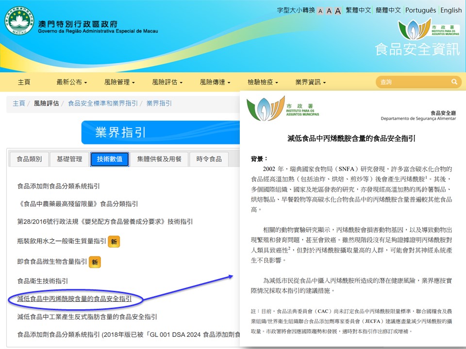 是次研究的詳細分析報告《澳門重點食品中丙烯酰胺含量研究報告》和相關業界指引《減低食品中丙烯酰胺含量的食品安全指引》已上載至市政署食品安全資訊網(https://www.iam.gov.mo/foodsafety/ )之「風險評估研究」和「業界指引」專頁,供公眾查閱。