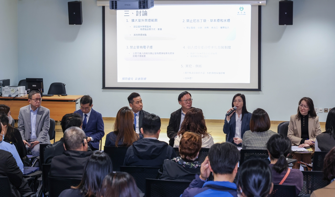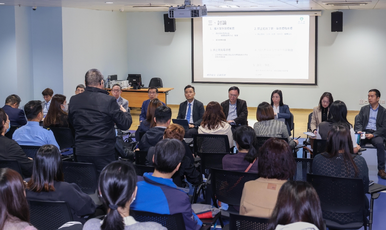隨後,衛生局代表就第5/2011號法律《預防及控制吸煙制度》修訂方向進行匯報,內容包括擴大室外禁煙範圍、禁止新型煙草產品(如尼古丁袋、草本煙、水煙生產、進出口、銷售)及電子煙的管有,並引入煙草產品標準化包裝規定,以降低吸煙率和二手煙暴露。目前控煙工作已見成效:15歲及以上人口與13-15歲青少年煙草使用率均呈下降趨勢,已提前達成世界衛生組織及《澳門健康藍圖》設定之2030年煙草使用率較2020年下降30%的目標。然而,近年來15歲及以上人口吸煙率下降幅度趨緩,且青少年電子煙使用率有上升趨勢。因此,衛生局秉持“健康促進、循序漸進、先易後難”原則,透過立法、執法、教育宣傳及鼓勵戒煙等方式持續推動控煙政策。