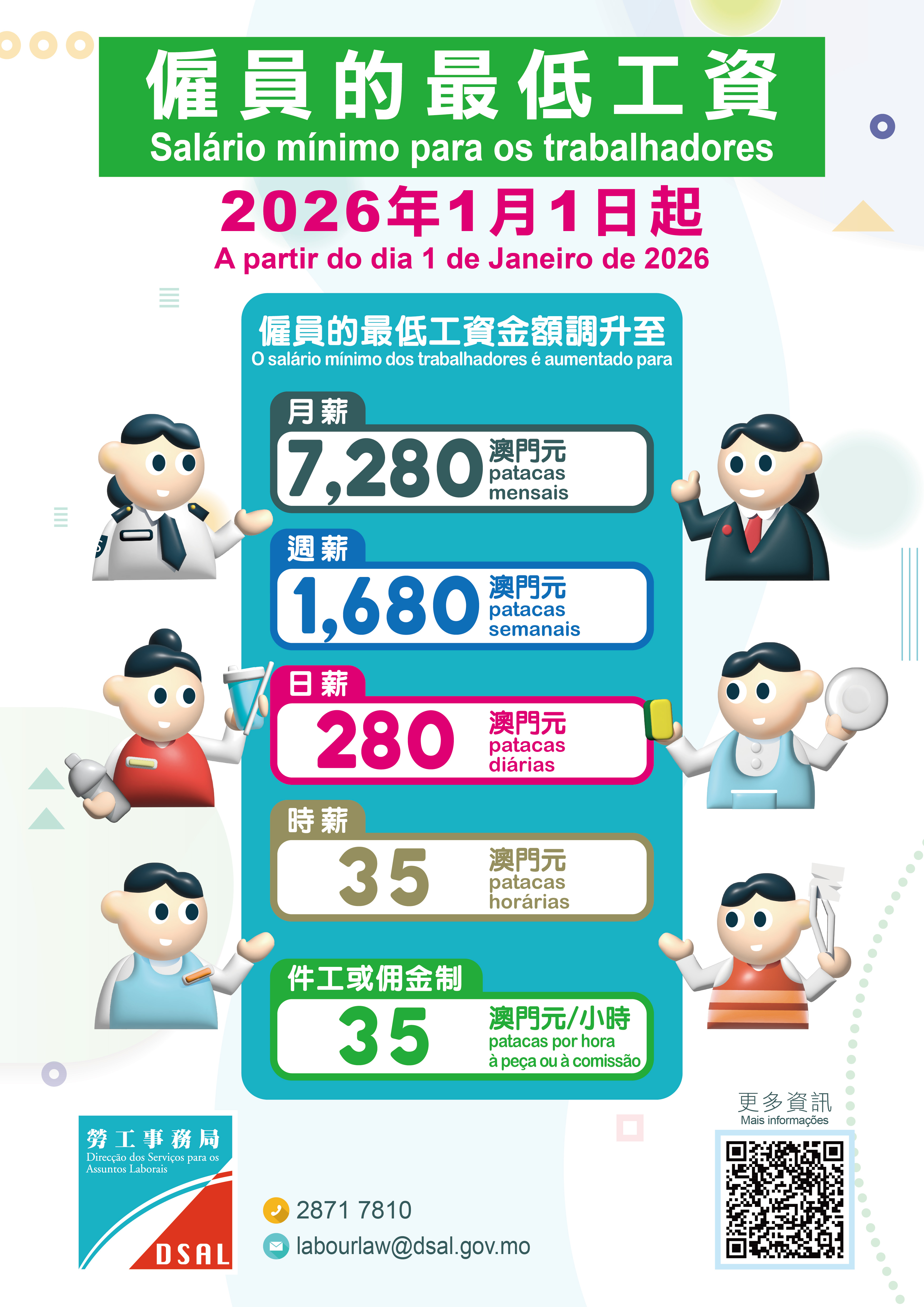 若市民對相關法律規定有任何疑問,歡迎致電2871 7810,亦可透過電郵:labourlaw@dsal.gov.mo或親臨勞工事務局查詢。