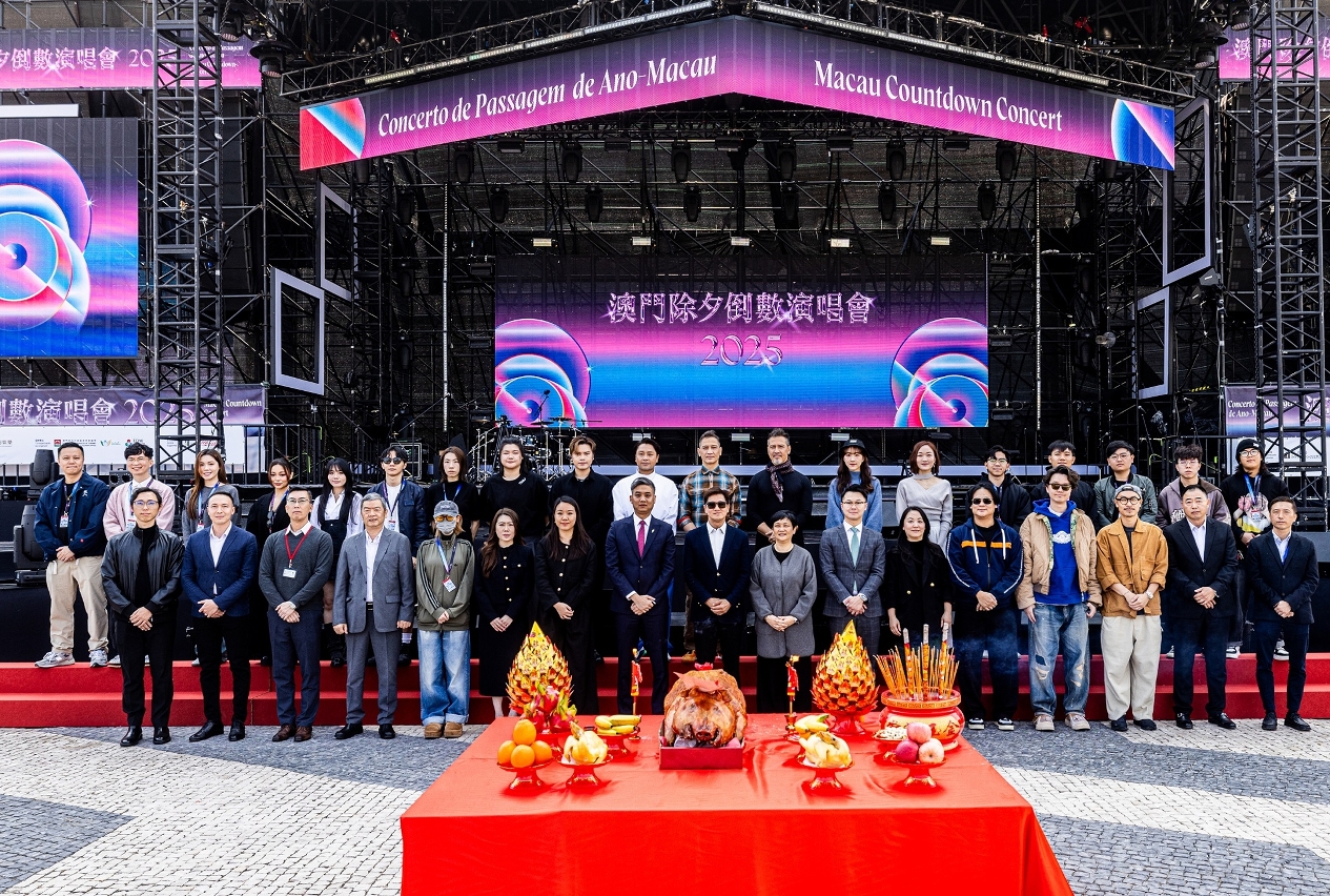 “2025澳門除夕倒數演唱會”與“2025氹仔除夕倒數晚會”將於12月31日晚上分別在西灣湖廣場及龍環葡韻舉行,澳門場次活動今天(30日)舉行拜神儀式,文化局副局長鄭繼明、澳娛綜合度假股份有限公司企業品牌發展及市場推廣部活動推廣及娛樂策劃副總裁溫敬德、美高梅品牌策劃助理副總裁凌蕙金、銀河娛樂集團公共關係傳媒關係助理副總裁梁玉萍、永利澳門及永利皇宮品牌及廣告行政總監陳家明、金沙中國有限公司品牌及度假村營銷行政總監葉芷雅、新濠博亞娛樂企業傳訊總監賴珮君等各主辦單位代表,聯同協辦單位與支持單位的代表,以及一眾演藝人員出席,祈願活動順利圓滿。兩項演唱會在倒數環節中不設煙花表演,敬請觀眾留意。