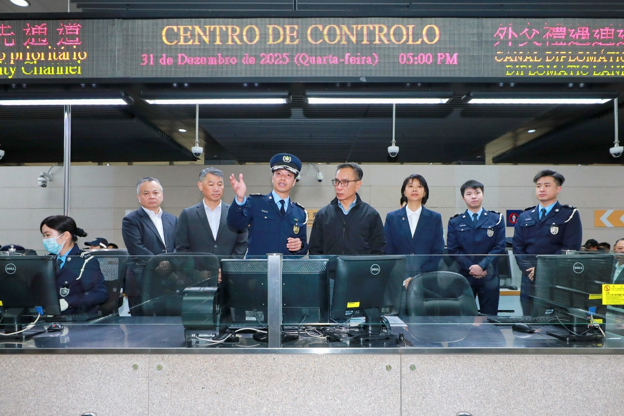 日間,陳司長一行先前往氹仔金光大道,了解警方的活動管控措施,包括觀眾區域的劃分、現場路線提示、應急救援預案,以及交通管制措施等,並指示團隊須加強安全防範意識,確保跨年倒數活動在安全有序進行。隨後,陳司長前往關閘出入境事務站,視察口岸的通關情況、車道運作及關檢工作,尤其關注旅客的通關體驗,強調全體人員須齊心協力,落實出入境管控預案,保持通關順暢。