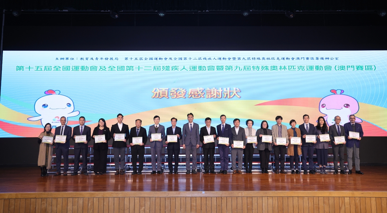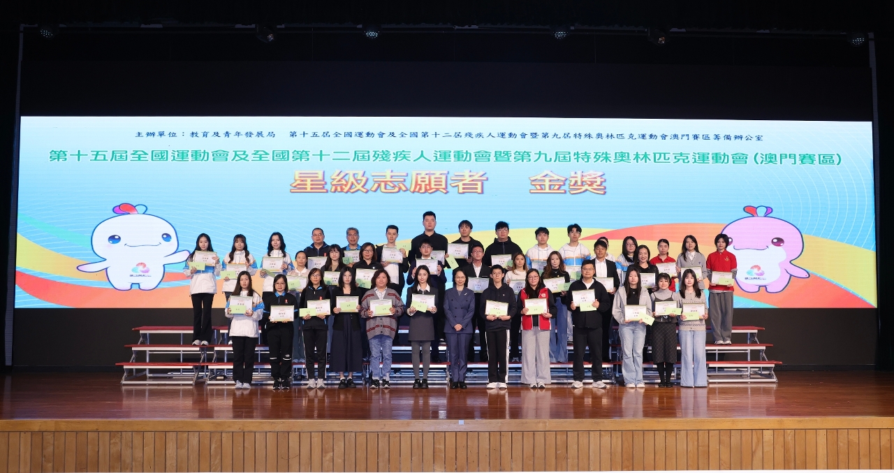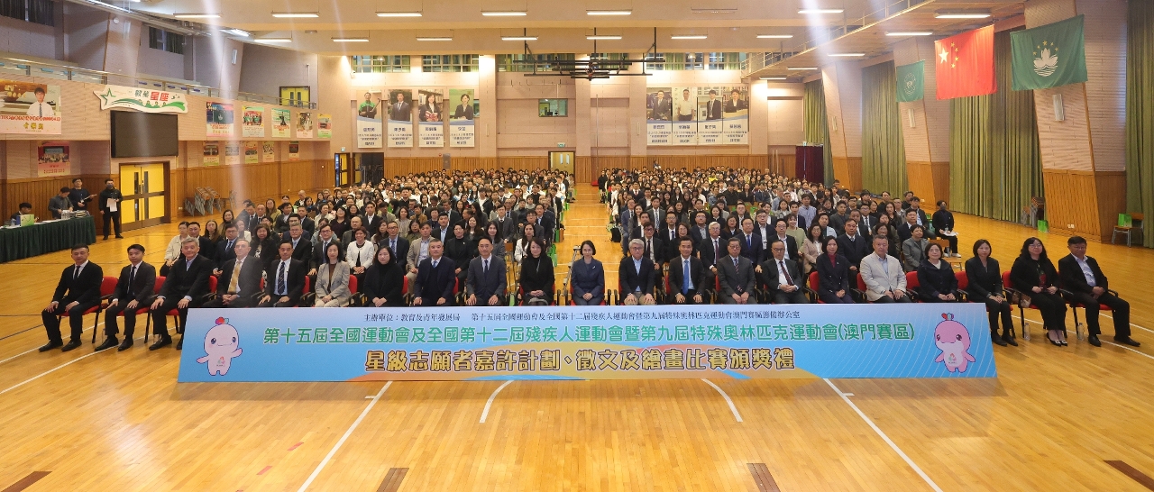 第十五屆全國運動會及全國第十二屆殘疾人運動會暨第九屆特殊奧林匹克運動會(十五運會及殘特奧會)成功舉辦。教育及青年發展局與十五運會及殘特奧會澳門賽區籌備辦公室於1月29日在教業中學舉行星級志願者嘉許計劃、徵文比賽及繪畫比賽頒獎禮,以表彰表現優異的志願者以及兩項比賽的得獎學生,透過積極投身志願服務、文字與藝術,傳遞“團結、奮鬥、包容、友愛”、“殘健融合、自強不息”的正向能量。