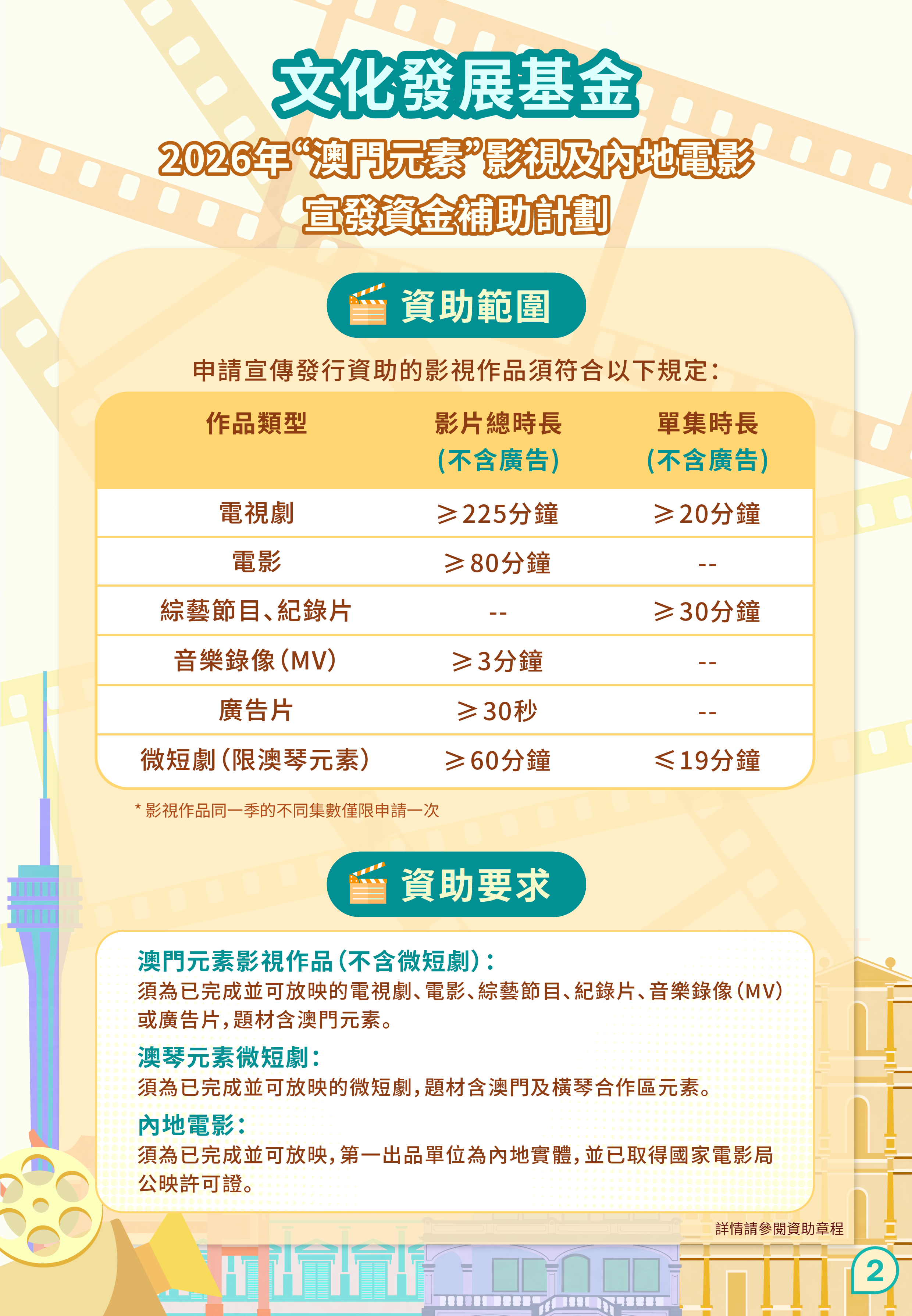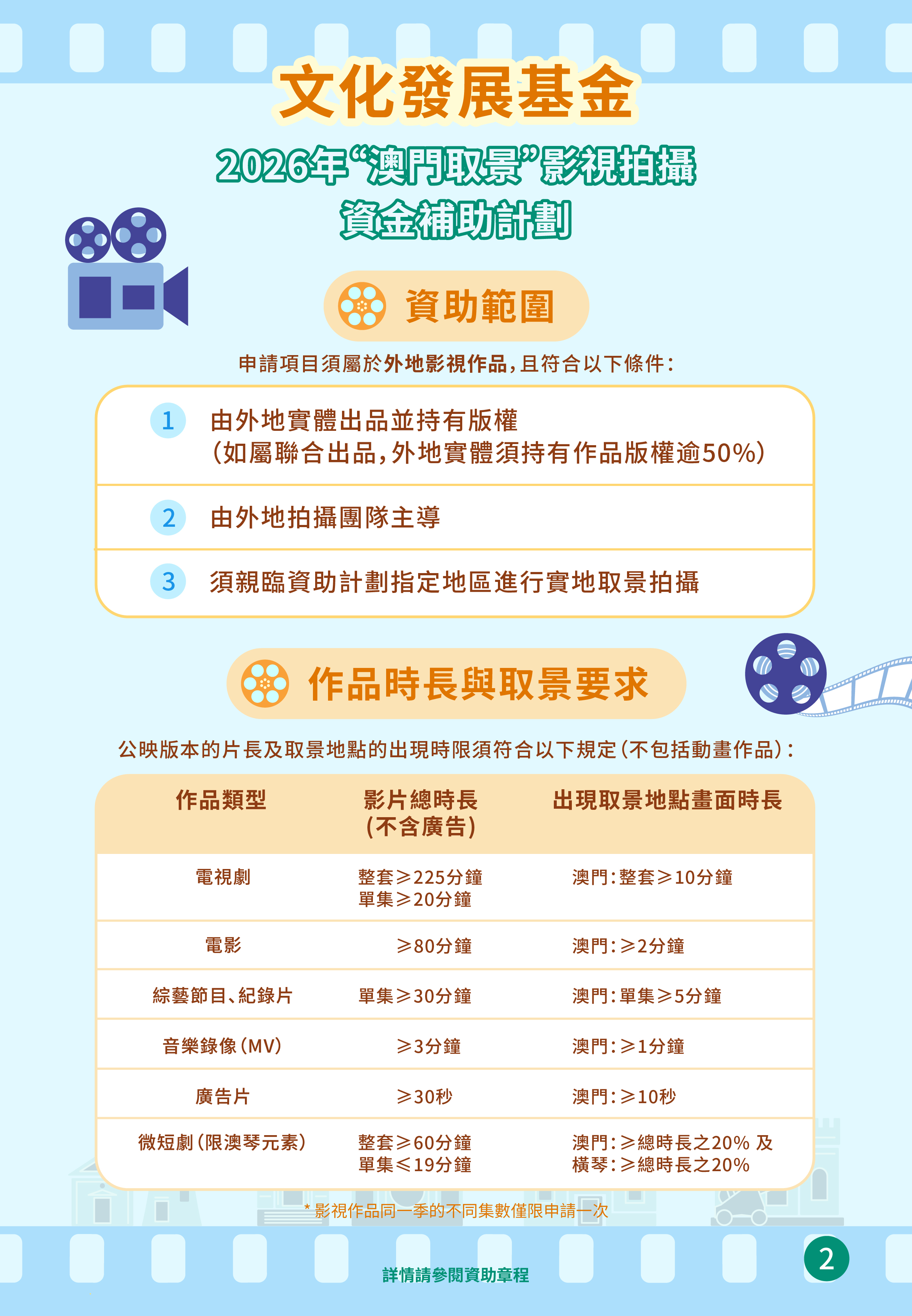 • “澳門取景"影視拍攝資金補助計劃 (2)