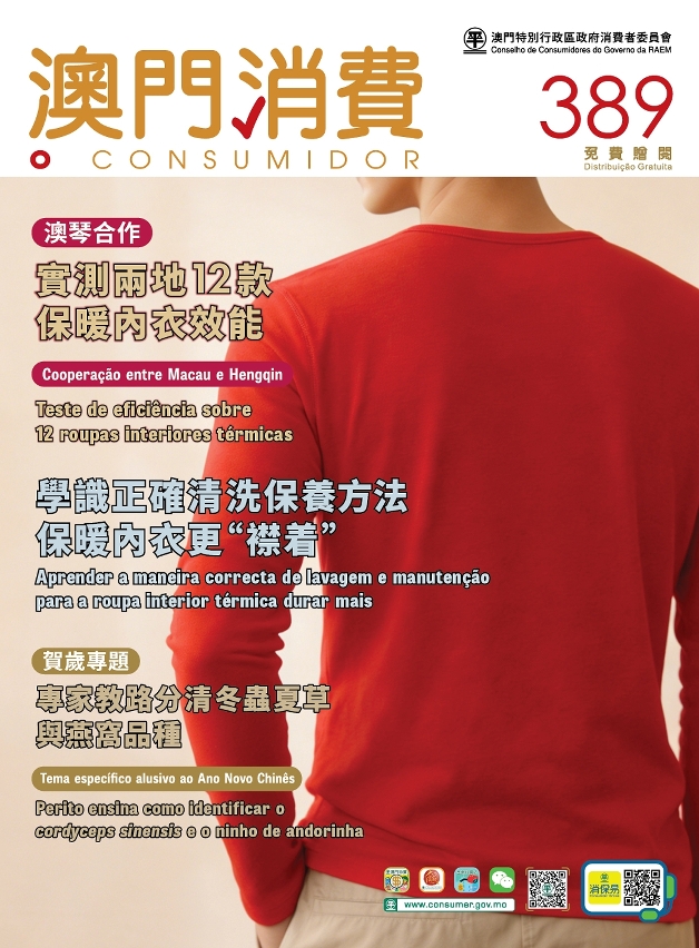 最新一期的第389期《澳門消費》公佈澳琴兩地多款保暖內衣測試報告,消費者可參考該報告中共6項的測試結果,作出更精明的消費選擇。
