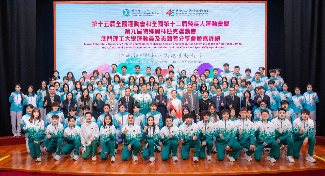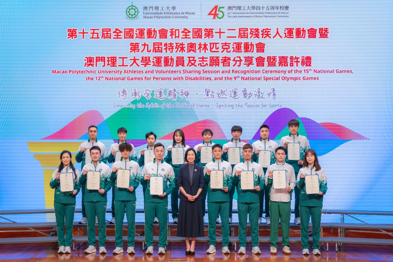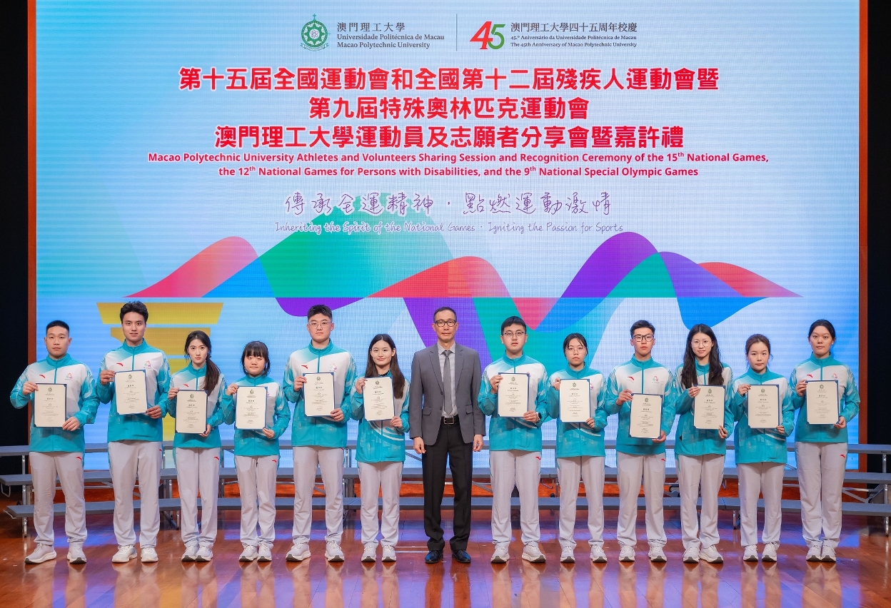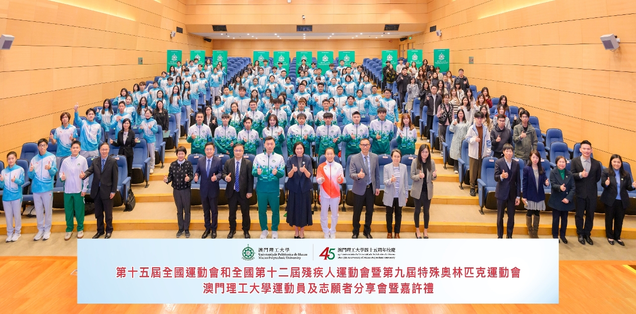 為喜迎澳門理工大學45周年校慶,並慶祝第十五屆全國運動會及全國第十二屆殘疾人運動會暨第九屆特殊奧林匹克運動會成功舉行,澳理大舉辦全運會運動員及志願者分享會暨嘉許禮,以“傳承全運精神,點燃運動激情”為主題,凝聚澳理大師生、運動員和志願者,分享參與十五運會及殘特奧會的經驗和喜悅,同時感謝一眾師生教練員、運動員及志願者的積極拼搏、熱誠奉獻,氣氛喜悅動人。