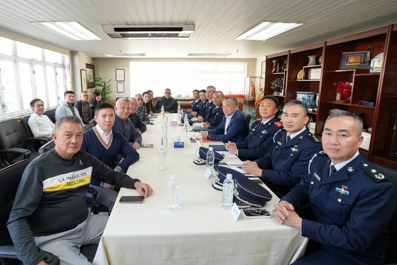 農曆新年將至,海關加強春節前後的執法部署及社區宣傳工作。於2月4日,海關關長何浩瀚、副關長李煜輝及助理關長葉華釗帶領一眾主管人員前往內港,向碼頭業界、澳門漁民互助會及澳門遠洋漁業發展暨船東協會代表,介紹海關的冬防部署情況,並聽取業界團體對海關工作的意見。