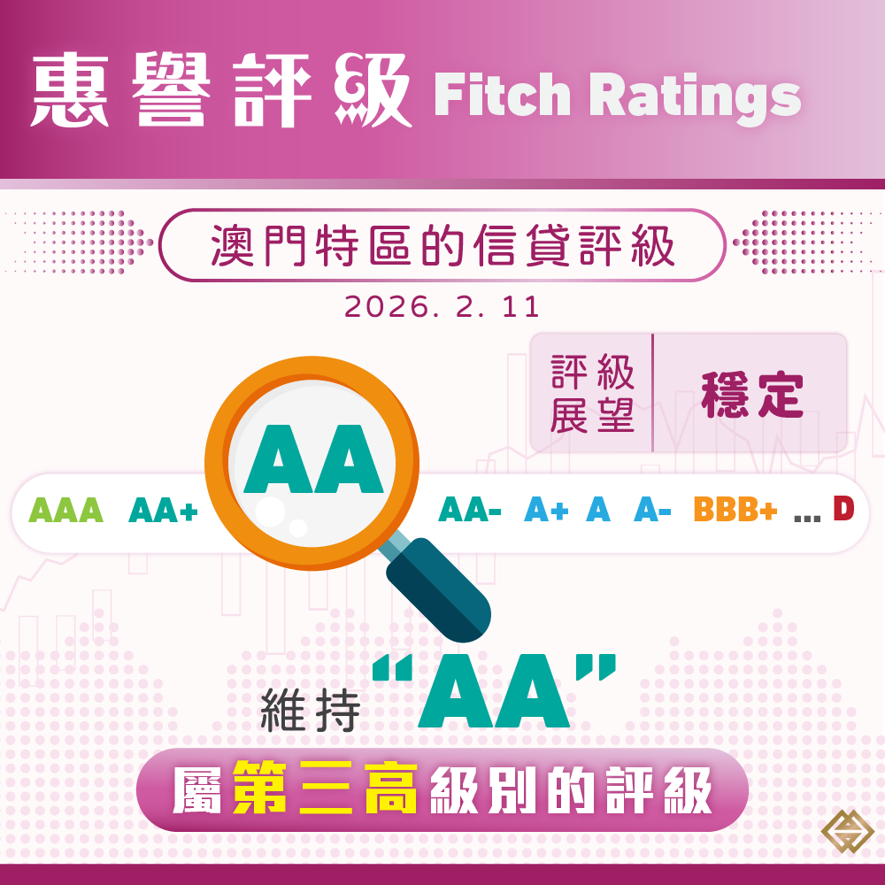 惠譽國際評級有限公司(Fitch Ratings,下簡稱“惠譽")今(11)日公佈維持澳門特區的“AA”長期本外幣發行人信貸評級,評級展望為“穩定”。