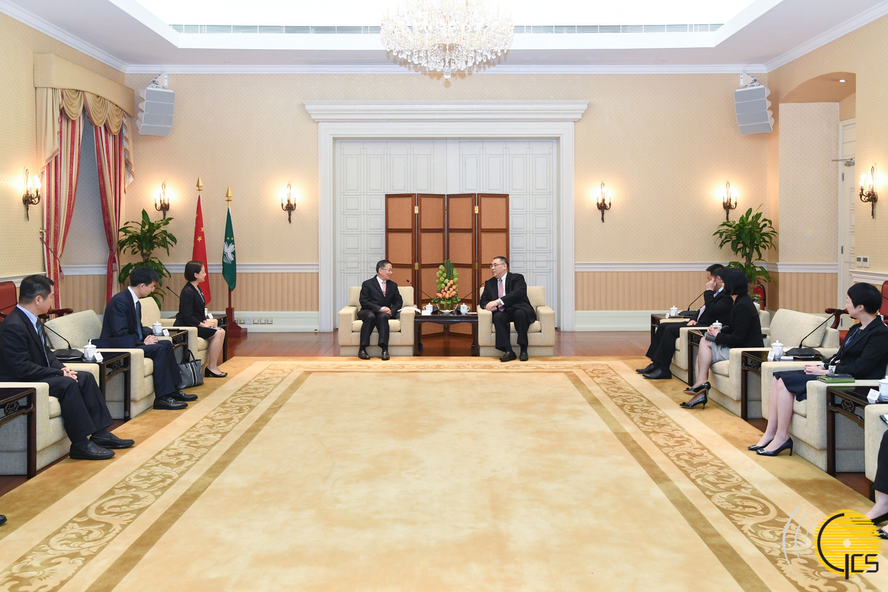 • The Chief Executive, Mr Chui Sai On, meets with the Chairman of Board of Directors of the Agricultural Bank of China, Mr Zhou Mubing, at Government Headquarters.