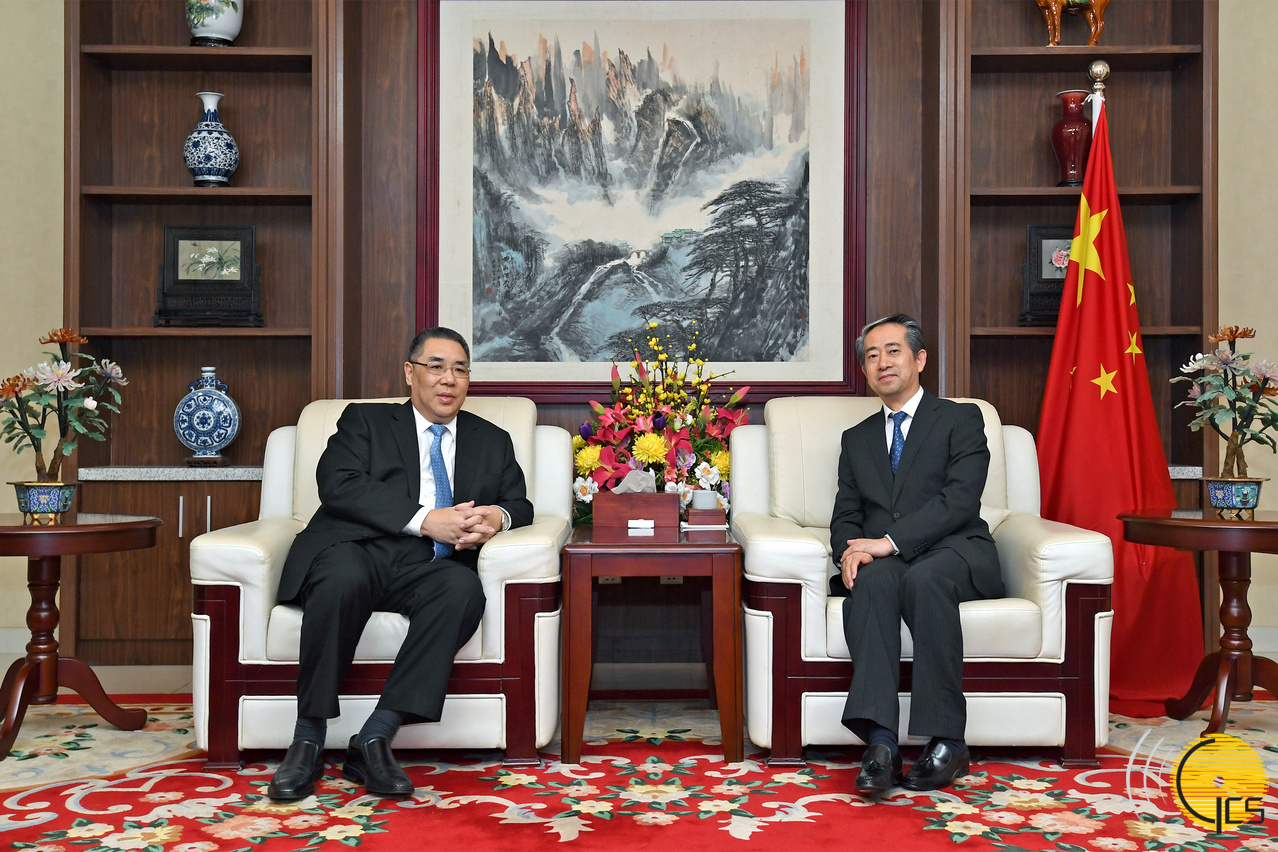 The Chief Executive, Mr Chui Sai On, meets with the Ambassador Extraordinary and Plenipotentiary of the People's Republic of China to the Kingdom of Cambodia, Mr Xiong Bo, during a visit to Phnom Penh, capital of Cambodia.