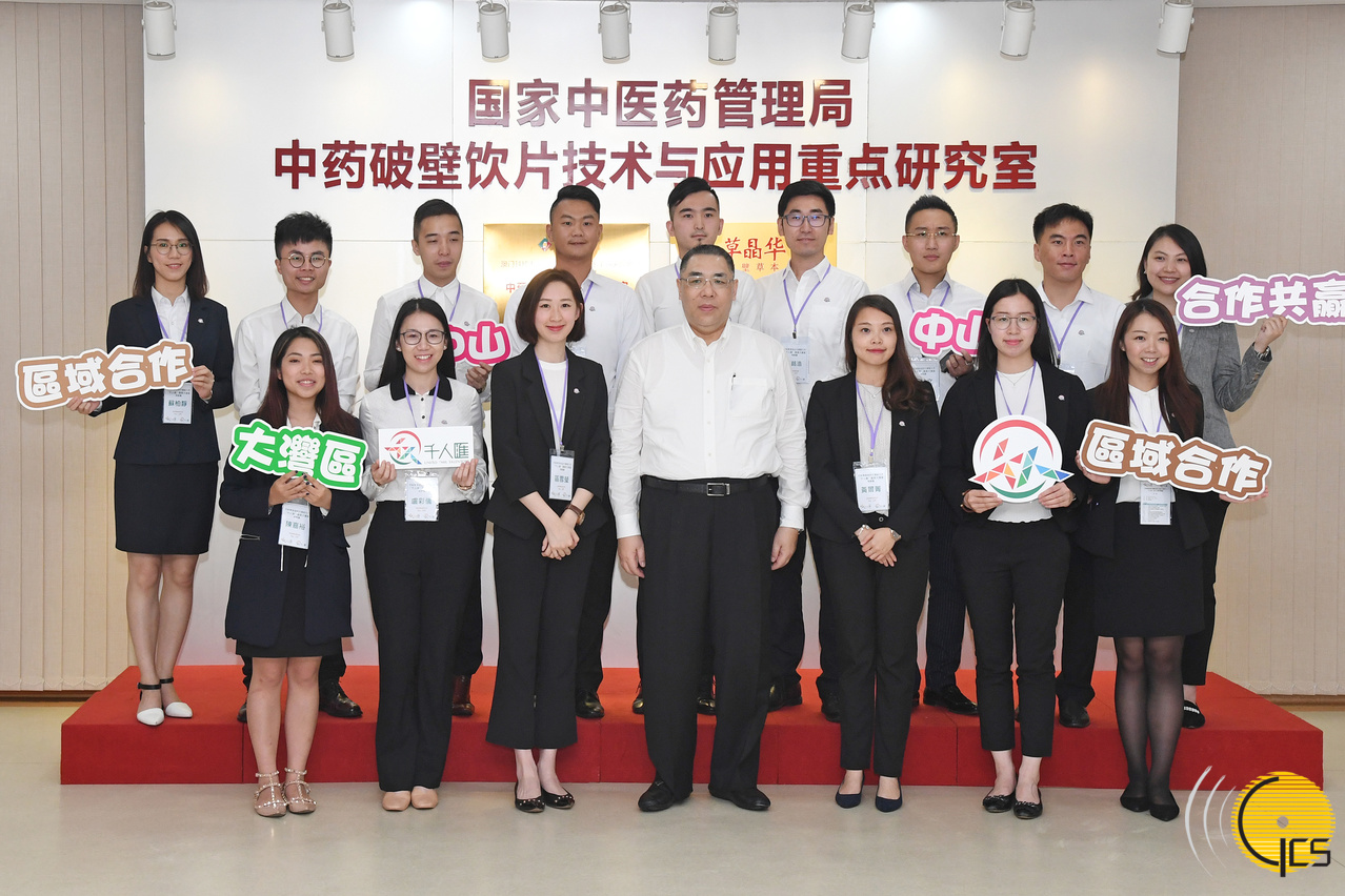 • The Chief Executive, Mr Chui Sai On, poses for a photo at Zhongzhi Pharmaceutical Holdings with members of the “Gathering of Thousand Talents”, who are part of the delegation of the Zhongshan visit.