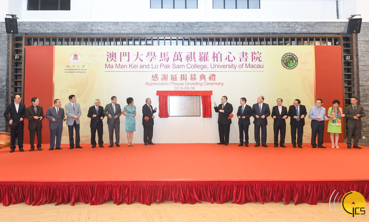 The Chief Executive, Mr Chui Sai On, presides over the appreciation plaque unveiling ceremony of the Ma Man Kei and Lo Pak Sam College at the University of Macau.