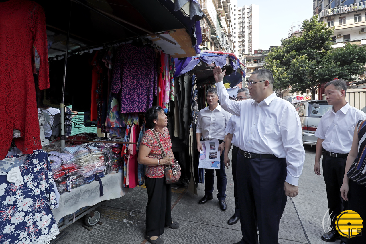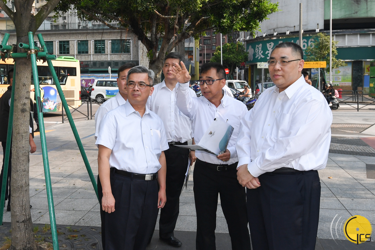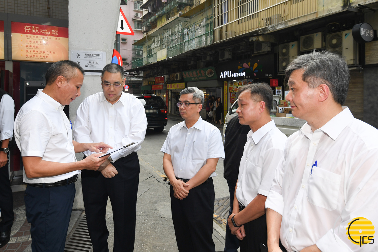 The Chief Executive, Mr Chui Sai On, visits several neighbourhoods in low-lying areas across the city in order to inspect the Government’s preparedness in response to Typhoon Mangkhut and review planning in case of evacuation need. Accompanying Mr Chui on the visit are the Secretary for Security, Mr Wong Sio Chak; the Commissioner-General of the Unitary Police Service and commander of the joint civil protection operations, Mr Ma Io Kun; and the Director General of the Macao Customs Service, Mr Vong Iao Lek.
