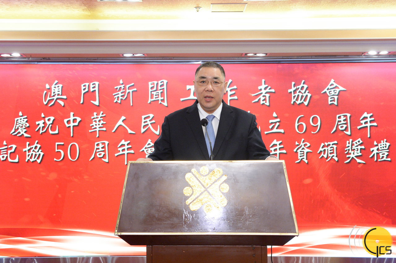 • The Chief Executive, Mr Chui Sai On, delivers a speech at a reception hosted by the Macao Media Workers Association to mark the National Day and the association's 50th anniversary.