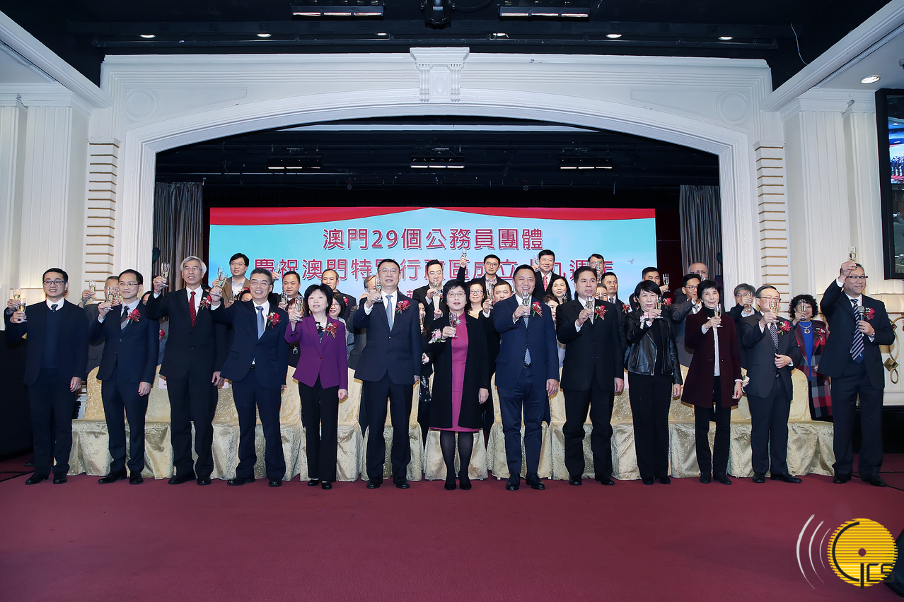 • The Secretary for Administration and Justice, Ms Chan Hoi Fan, and the Secretary for Economy and Finance, Mr Leong Vai Tac, attend a banquet hosted by Macao civil servant associations to mark the 19th anniversary of the establishment of the Macao Special Administrative Region.