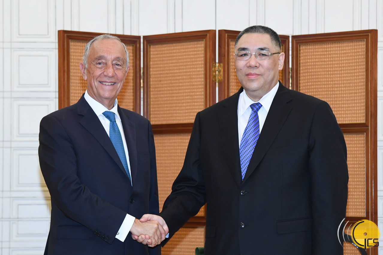 • The Chief Executive, Mr Chui Sai On, welcomes the visiting President of the Portuguese Republic, Mr Marcelo Rebelo de Sousa, at the Government Headquarters in Macao.