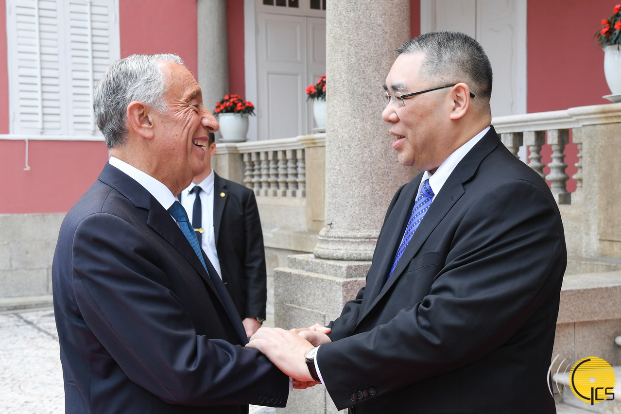 • The Chief Executive, Mr Chui Sai On, welcomes the visiting President of the Portuguese Republic, Mr Marcelo Rebelo de Sousa, at the Government Headquarters in Macao.
