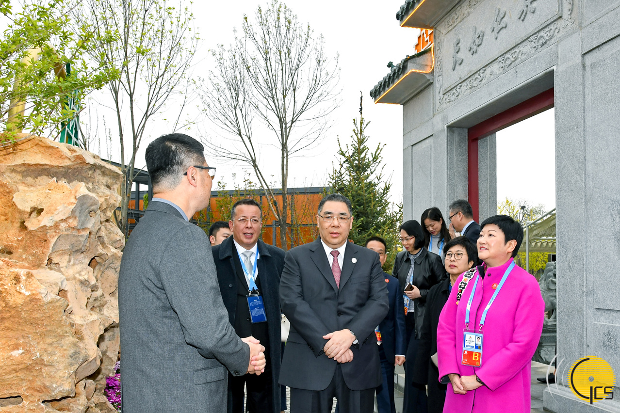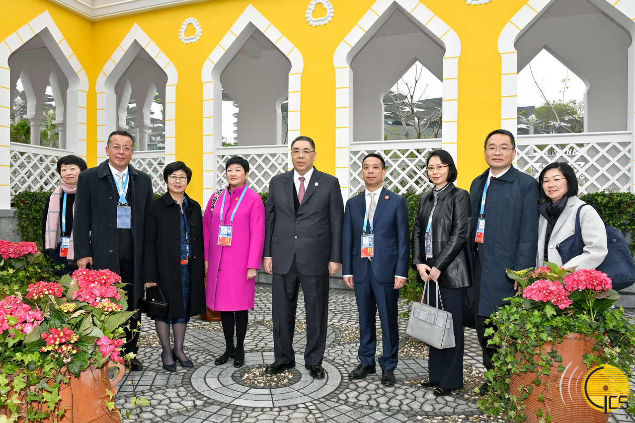 • The Chief Executive, Mr Chui Sai On, and other members of the Macao delegation visit the Macao presentation area set up at the 2019 Beijing International Horticultural Exhibition.
