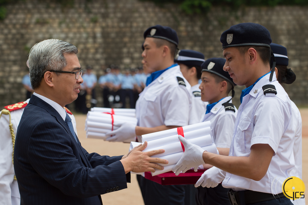 The Secretary for Security, Mr Wong Sio Chak, attends the closing ceremony of the 2018 training course for admission to the Macao Customs Service.