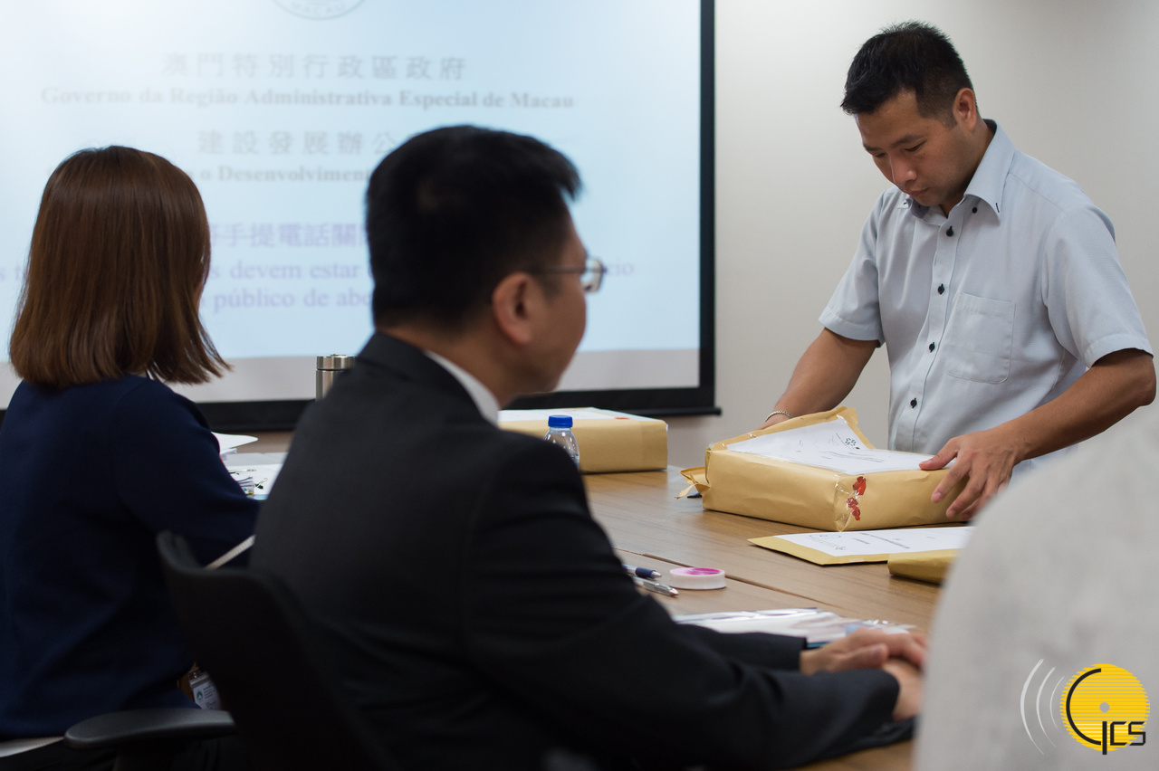 • Officials of the Infrastructure Development Office open tender documents for renovation works at the ground floor and basement second floor of the Flor de Lotus Road Car Park.